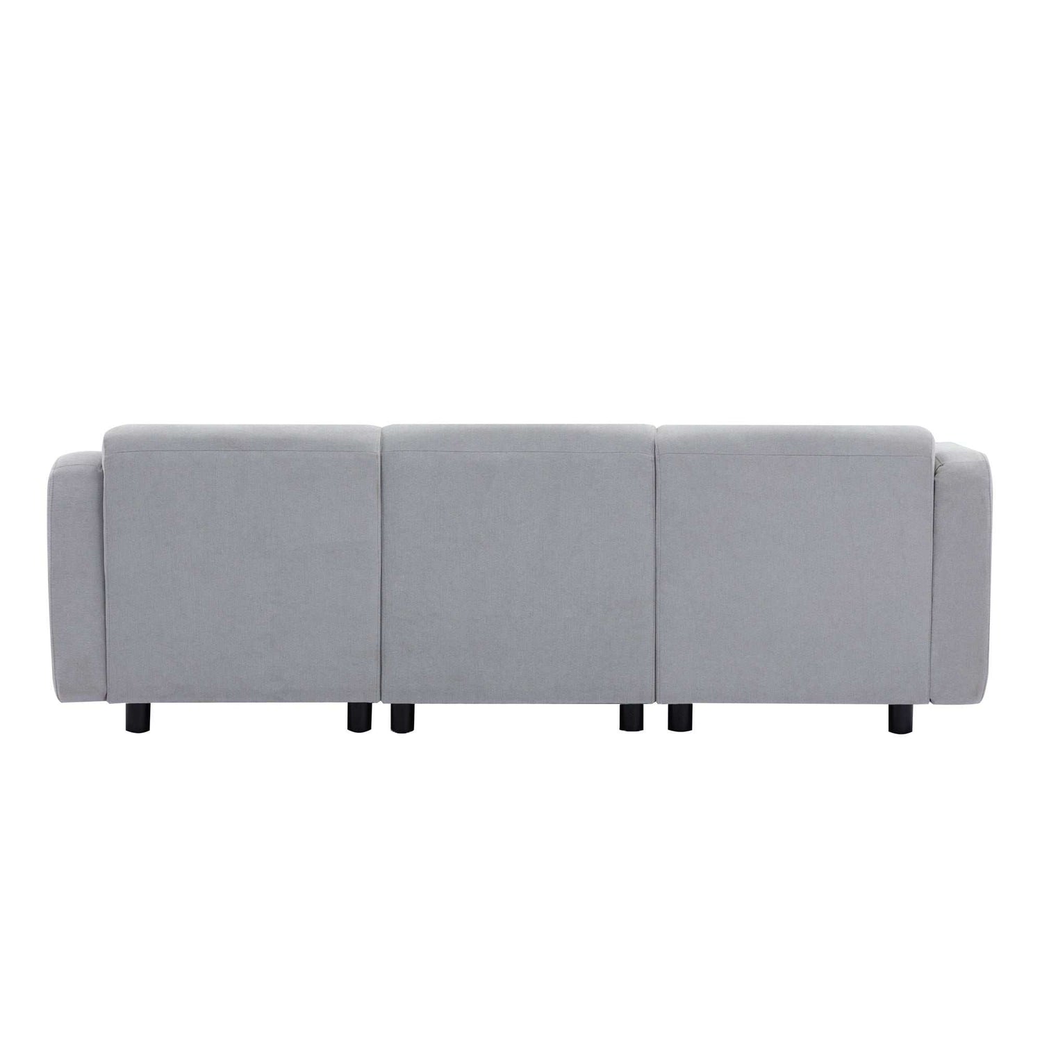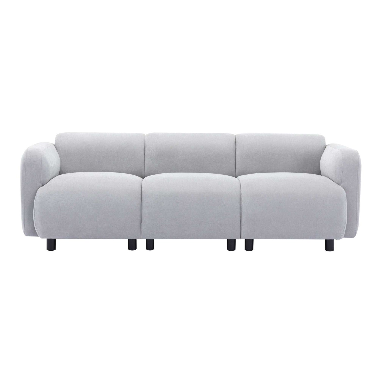 This is a modern 3-seat living room sofa designed to add both comfort and style to your home. It's perfect for larger families and entertaining guests, offering ample seating for up to three people. Made from high-quality polyester, it comes in two elegant color options: light grey and dark grey. The sofa features a modern design with plump out-looking cushions, providing a stylish addition to any living space.