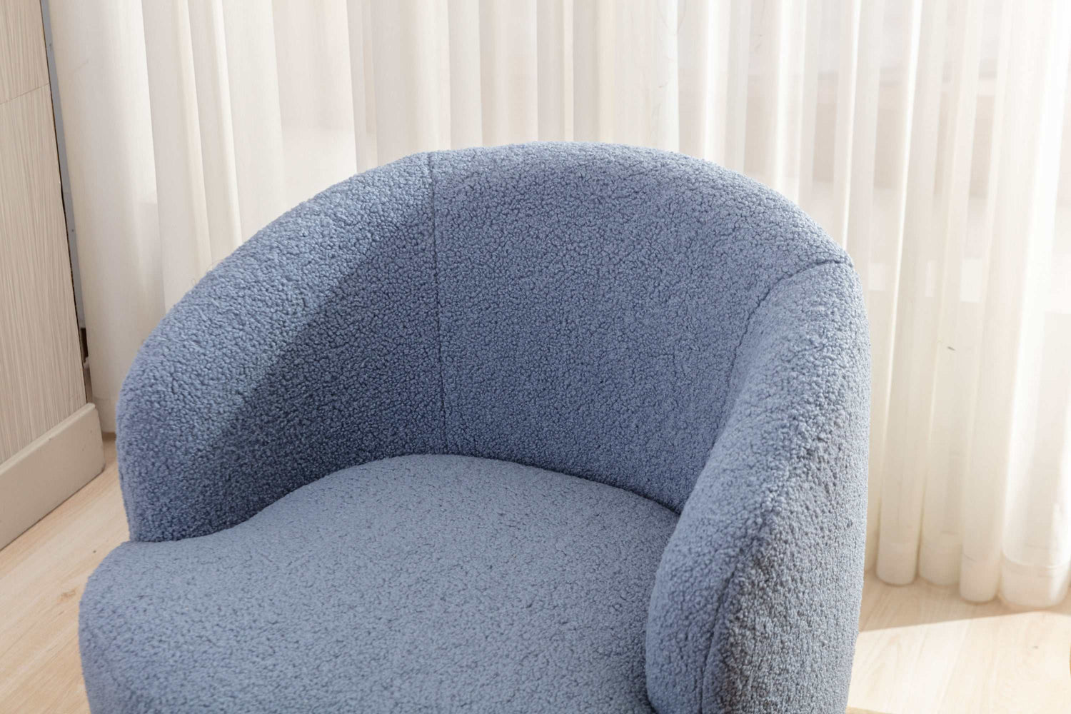 Tule Boucle Swivel Accent Armchair with Metal Ring Detail Light Blue