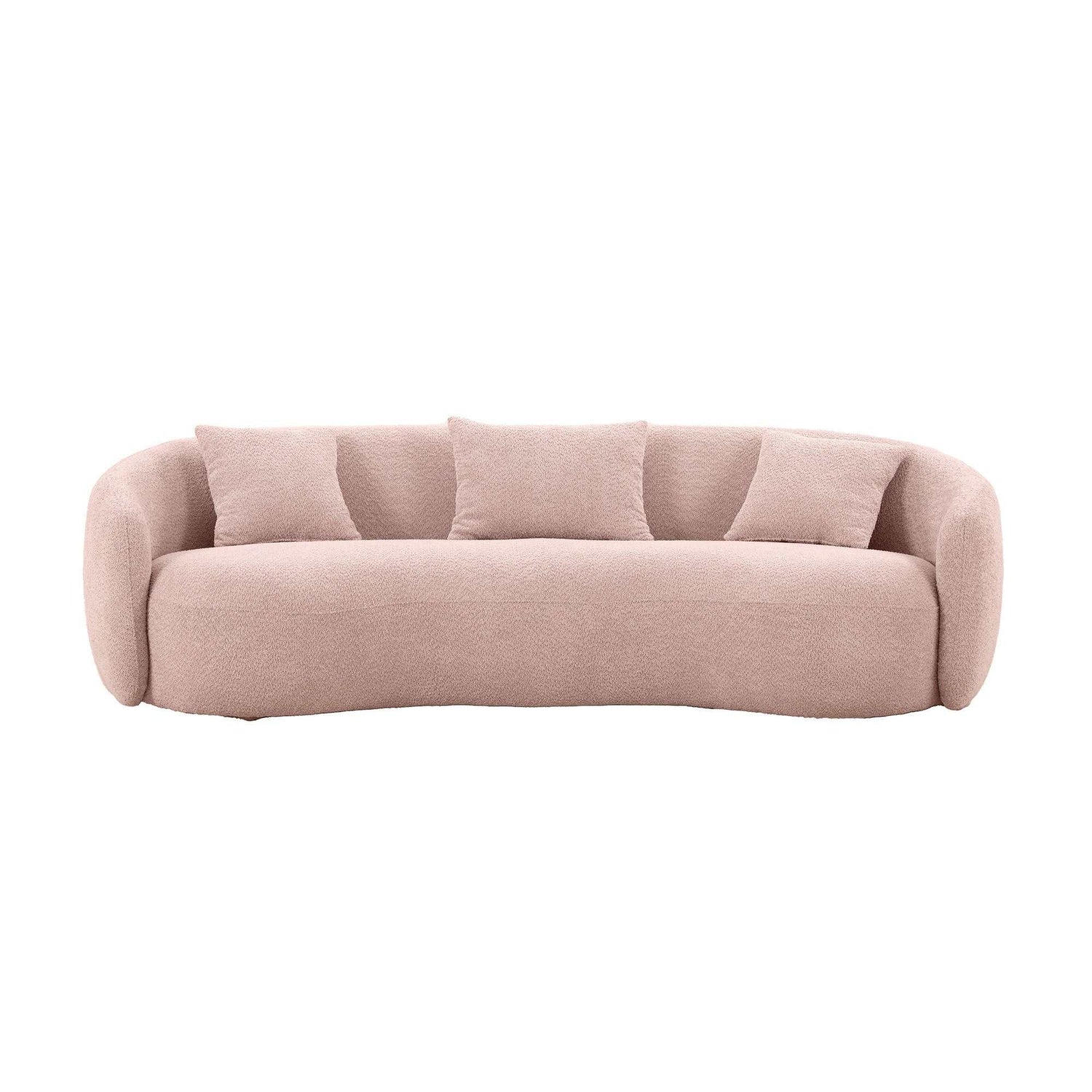 The eye-catching pink boucle fabric not only lends a trendy and fashionable vibe but also provides a soft, cozy texture that invites you to sink in and relax. Whether it's for your bedroom, office, or apartment, this sofa effortlessly complements various settings, bringing a touch of mid-century modern charm to your space.