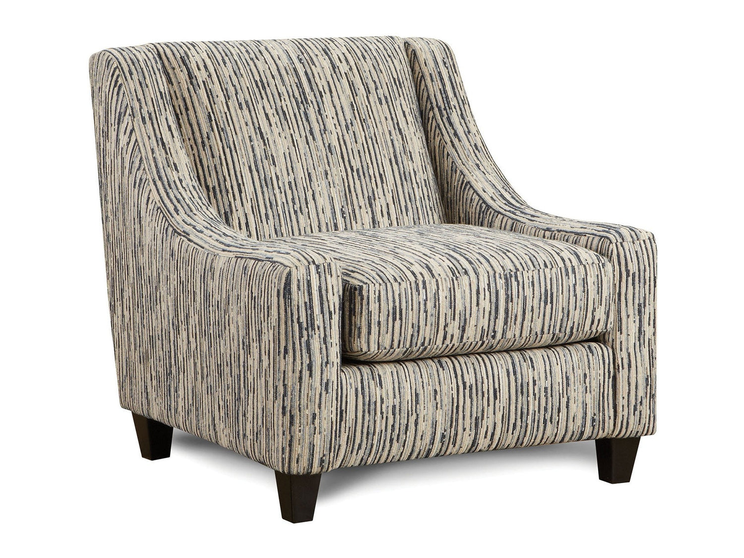 Erratic etched-art inspired patterns are woven throughout the fabric upholstery of this chair to create a muted pastel curiosity. Sloping track arms contribute a modern feel that is reinforced by the tapered dark-stained block wood legs that firmly compliment the dynamic style. The assortment of tones makes room placement easy, although this piece can certainly stand alone.