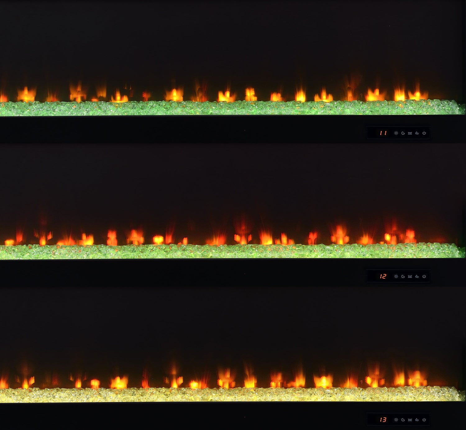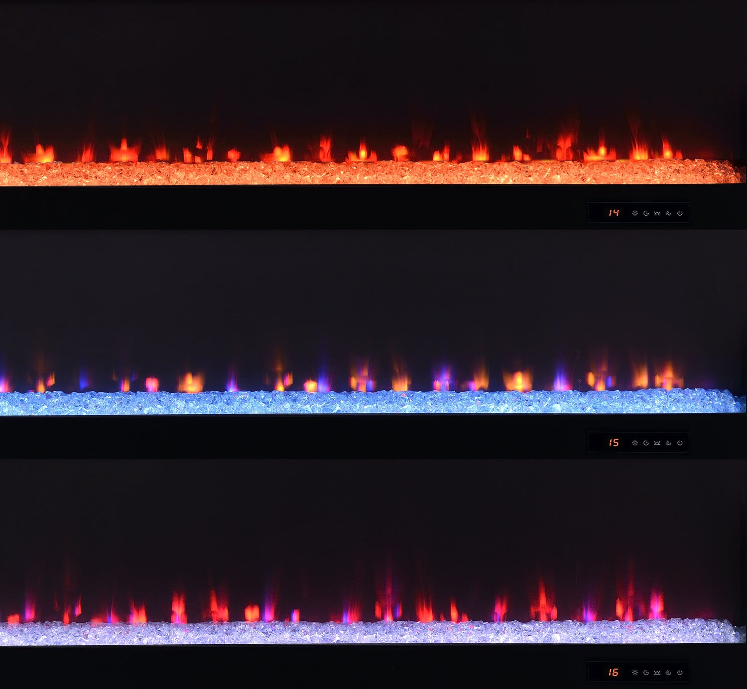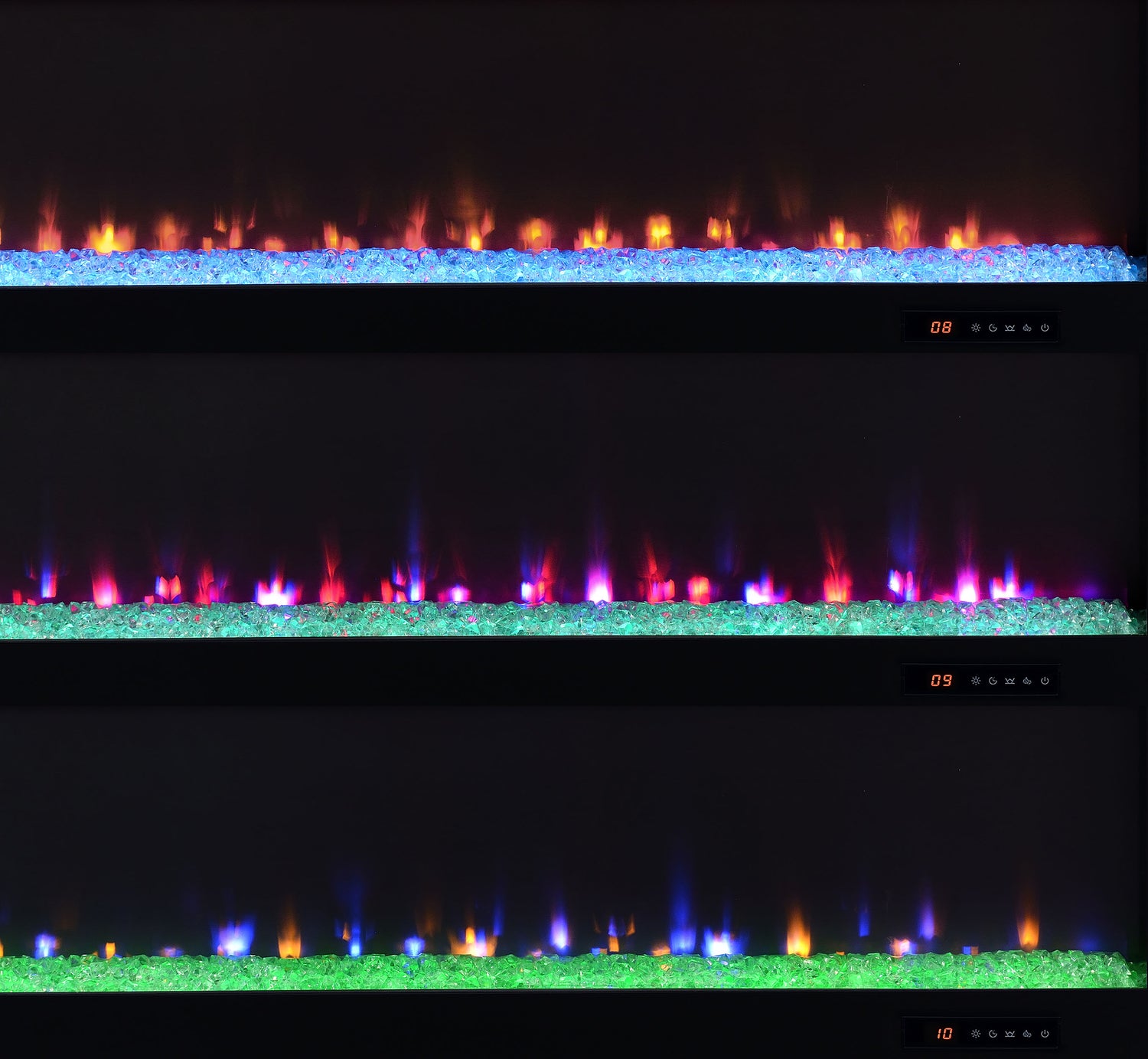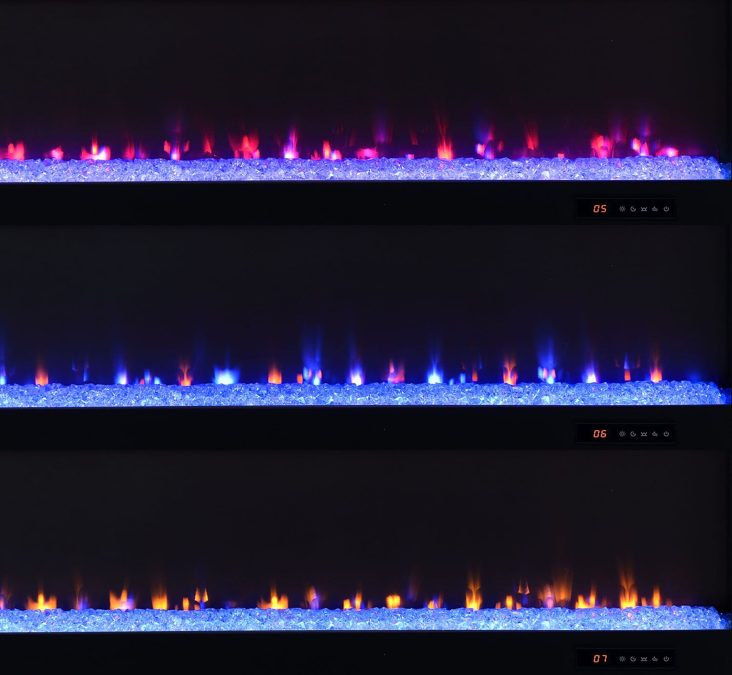 - TV stand flame visualizer console with crushed acrylic crystals and fifteen flame color options,