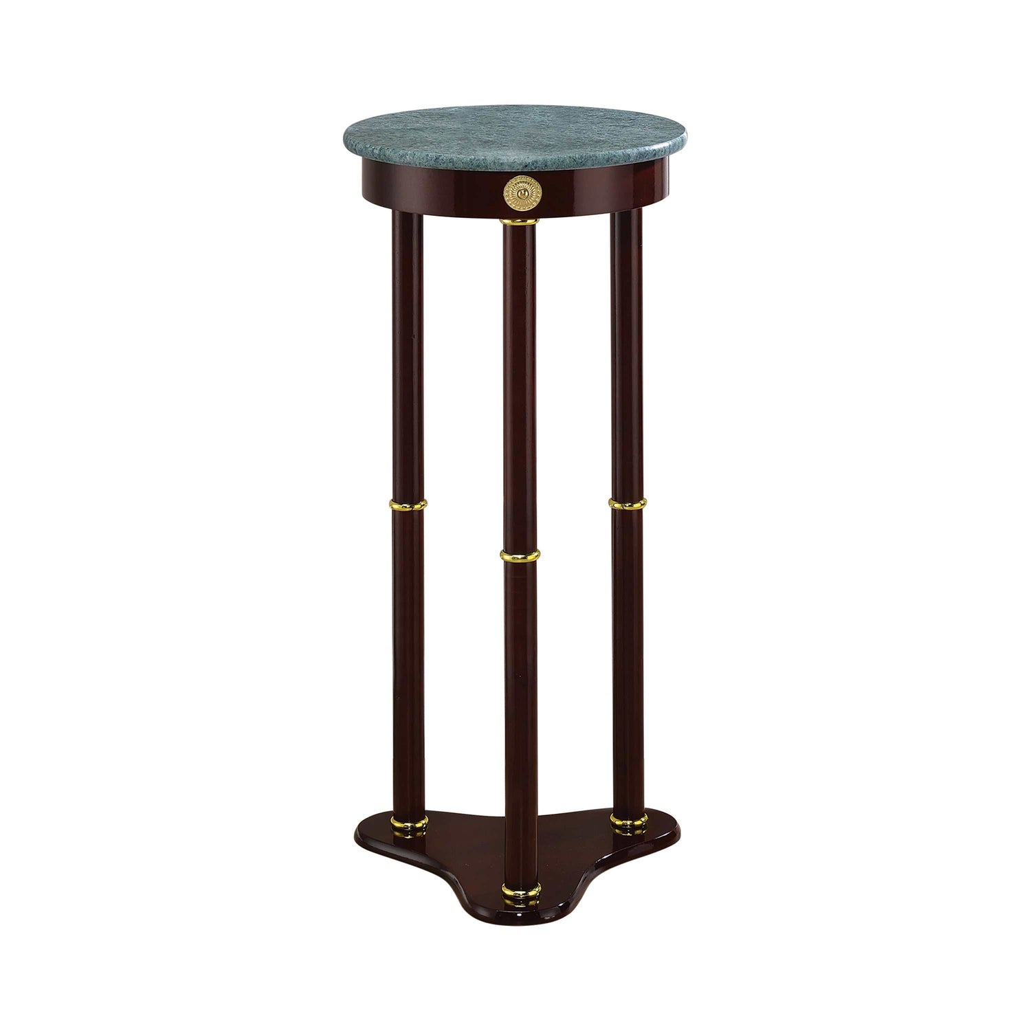 Accents to your house or townhouse add subtle touches that make it a home. This three-legged accent table gives your home character. It features a round green marble top that guests will stop and admire. Table is perfect as a stand for a small lily or your favorite scented candle. Comes finished in merlot with a soft, three-pronged spinner-like base.