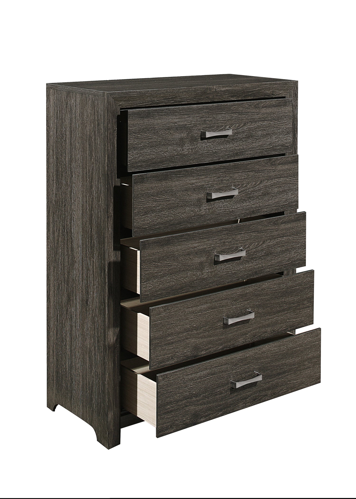Enhancing the contemporary design of your bedroom is the focus of the Edina Collection. The dark gray finish builds on the unexaggerated lines of this chest with chrome finish hardware accenting to achieve the modern look.