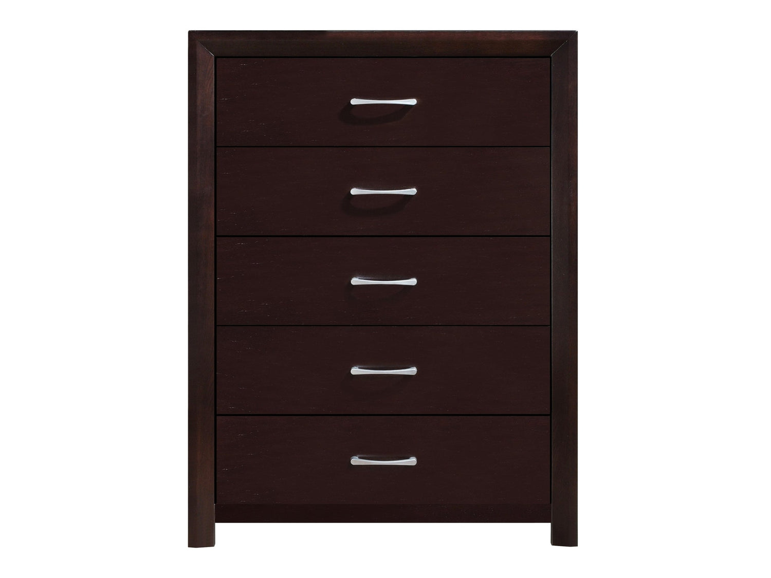 Enhancing the contemporary design of your bedroom is the focus of the Edina Collection. The espresso finish builds on the unexaggerated lines of this chest with silver finish hardware accenting to achieve the modern look.