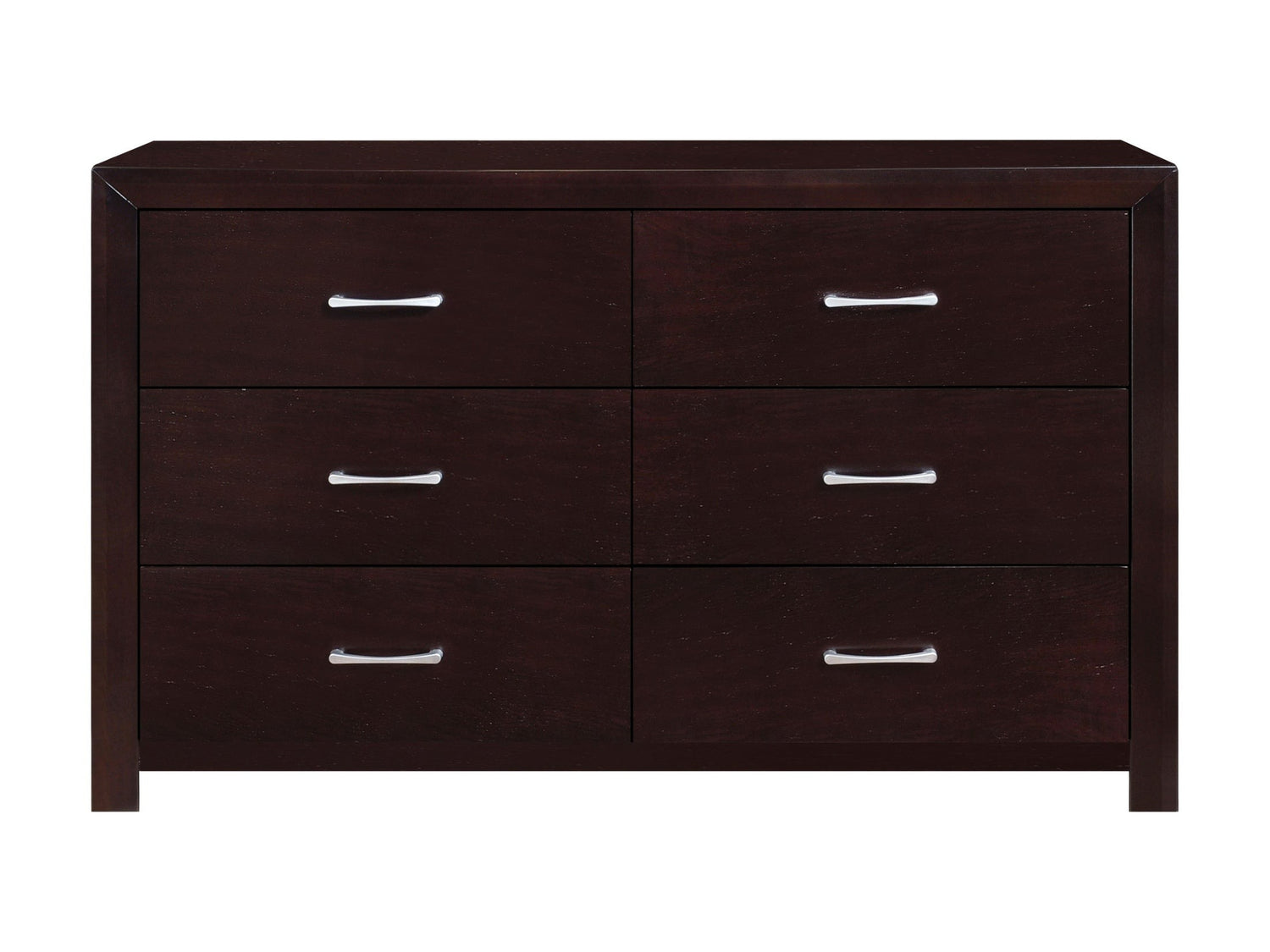 Enhancing the contemporary design of your bedroom is the focus of the Edina Collection. The espresso finish builds on the unexaggerated lines of this dresser with silver finish hardware accenting to achieve the modern look.