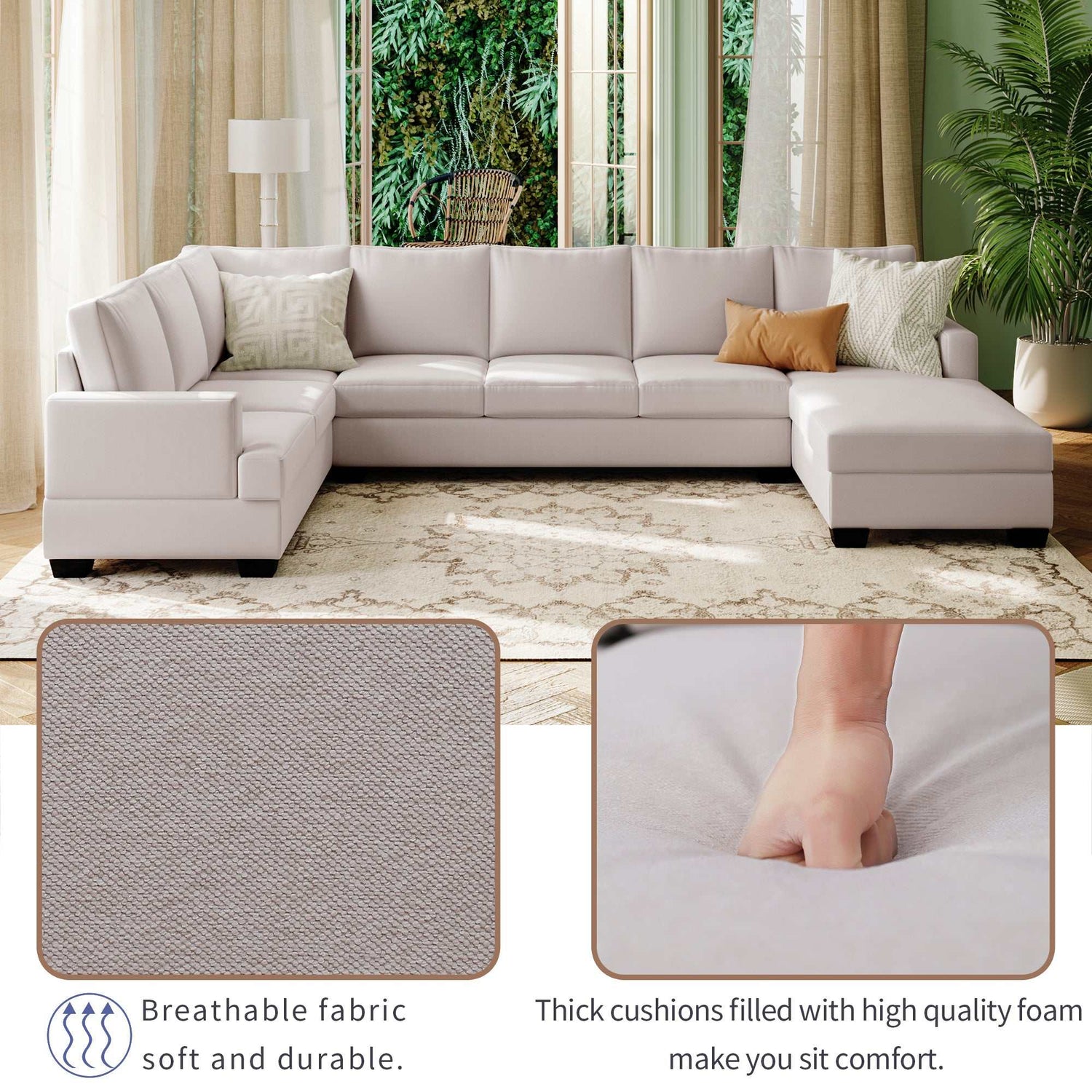 Elevate your living space with our Modern Large Upholstered U-Shape Sectional Sofa, a statement piece designed to redefine your living space. This spacious sectional sofa features an extra-wide chaise lounge, providing ample room for relaxation and gatherings.