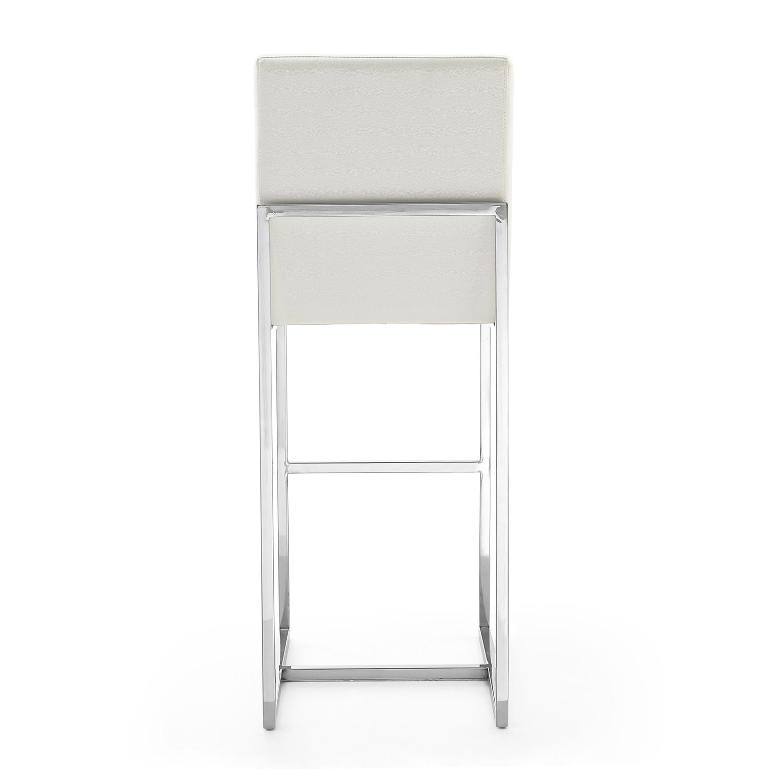 Element 29" Faux Leather Bar Stool in Pearl White and Polished Chrome