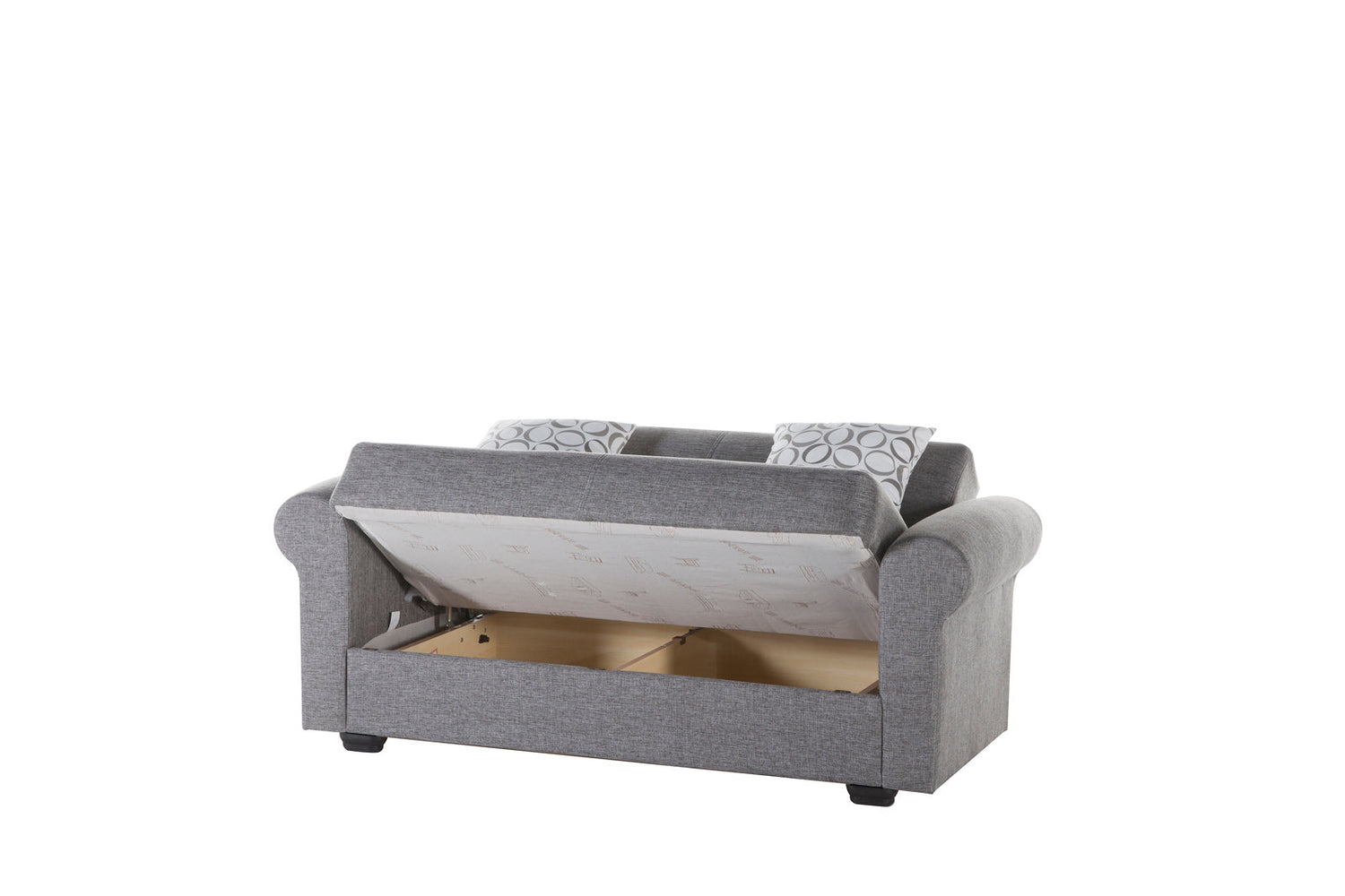 Perfect for intimate conversations or relaxation, this loveseat also boasts built-in storage and a convertible sleeper function, ensuring both elegance and utility.