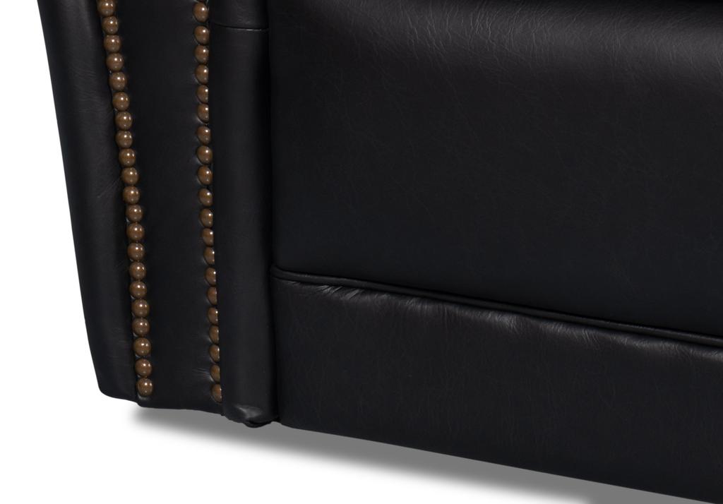 - Onyx Black Leather Upholstery: Covered in Top Grain Cow Leather in Onyx Black, offering a durable and comfortable seating surface.