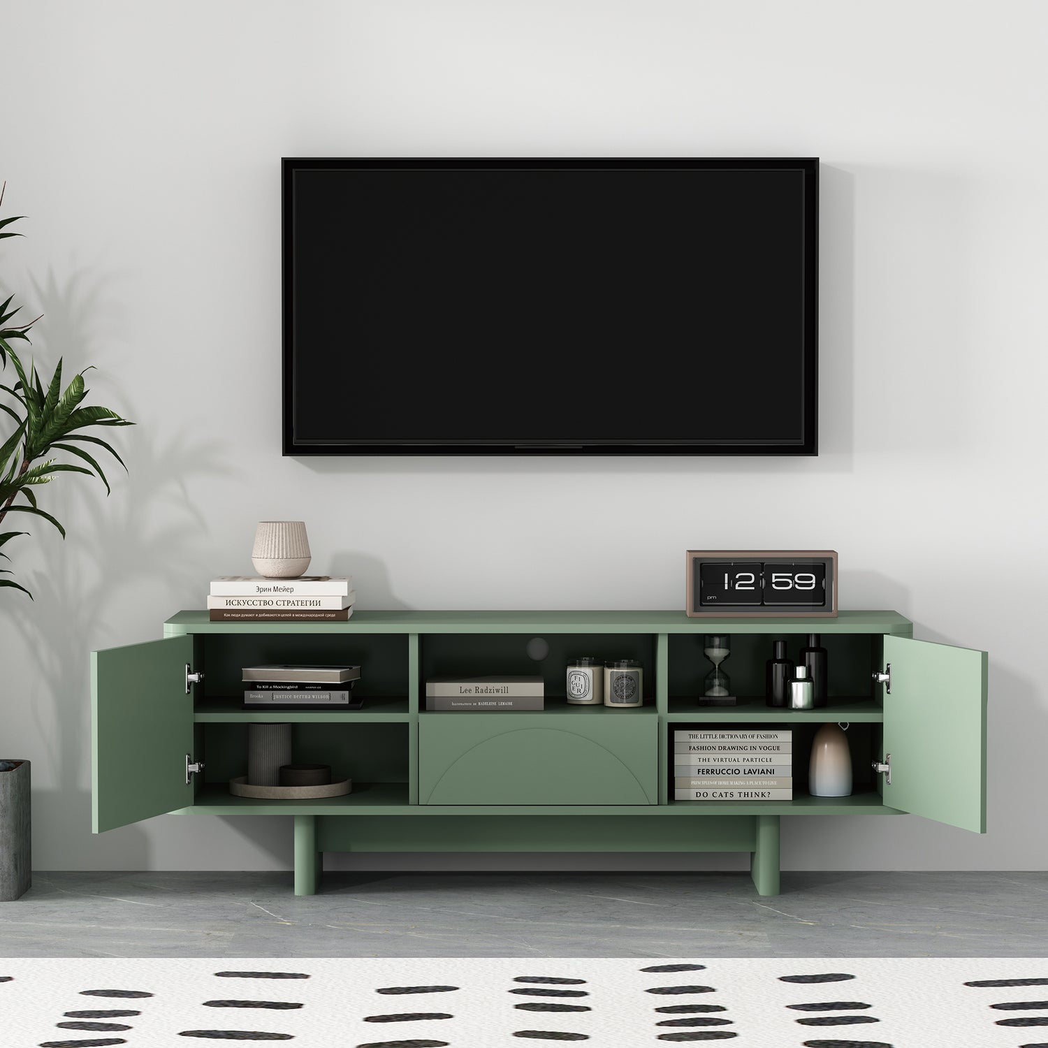 - Upon assembly, 59" TV Stand Dimensions Measure: 59.1 in. Length, 21.9 in. Height, 15.7 in. Depth.