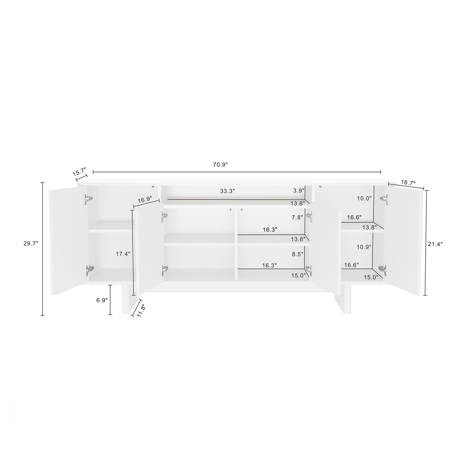 - Upon assembly, 70.86" Sideboard Dimensions Measure: 70.9 in. Length, 29.7 in. Height, 15.7 in. Depth.