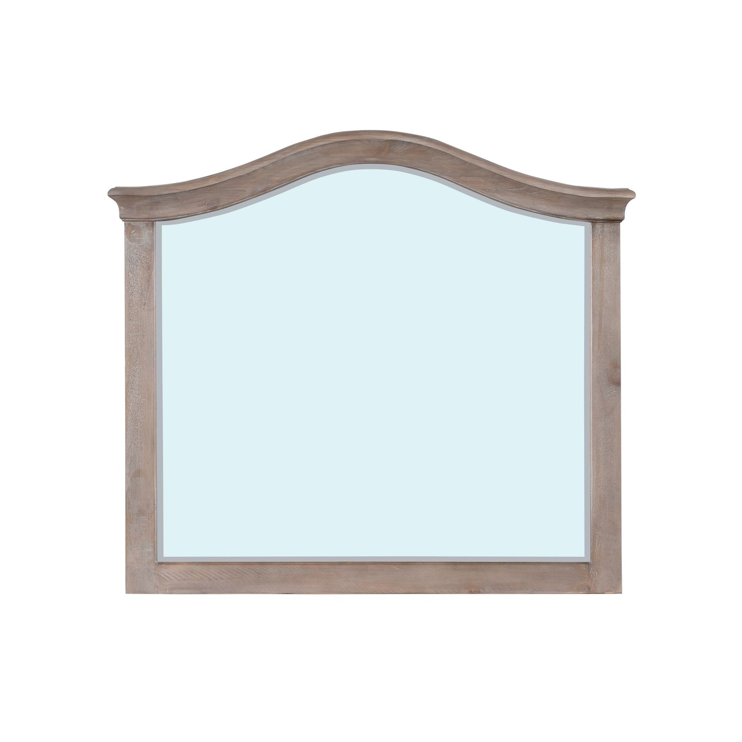 - Beveled glass mirror includes keyhole brackets for optional wall mounting.