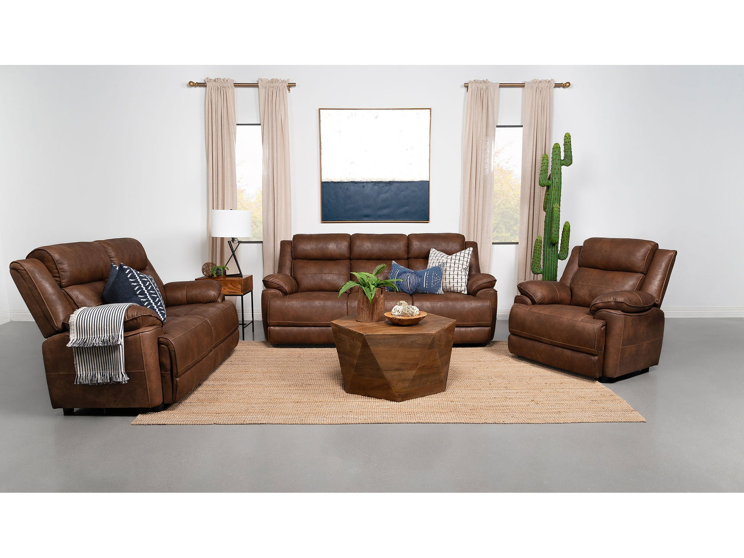 - Includes: One (1) sofa, one (1) loveseat, and one (1) chair- Rich brown faux leather is smooth and timeless, lending inviting style to your living area