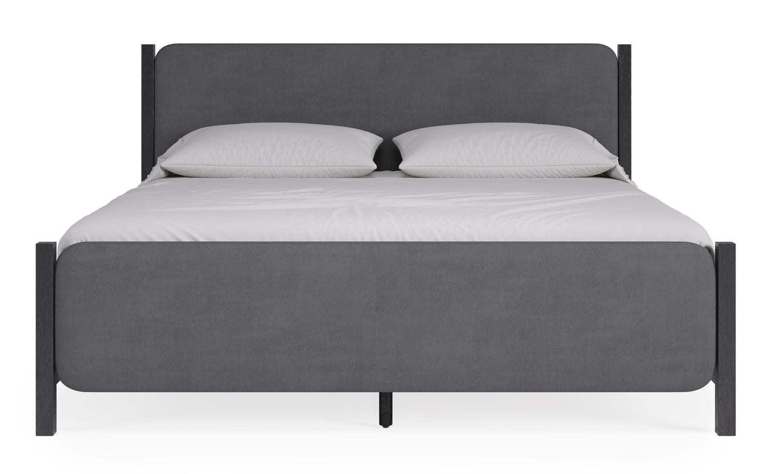 - Item Name: Elora Wood and Velvet Upholstered Bed in Jet and Charcoal