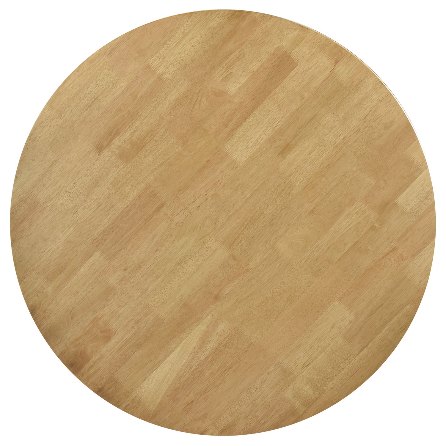 - A round over beveled circular tabletop offers stylish dimensionality and natural grain markings