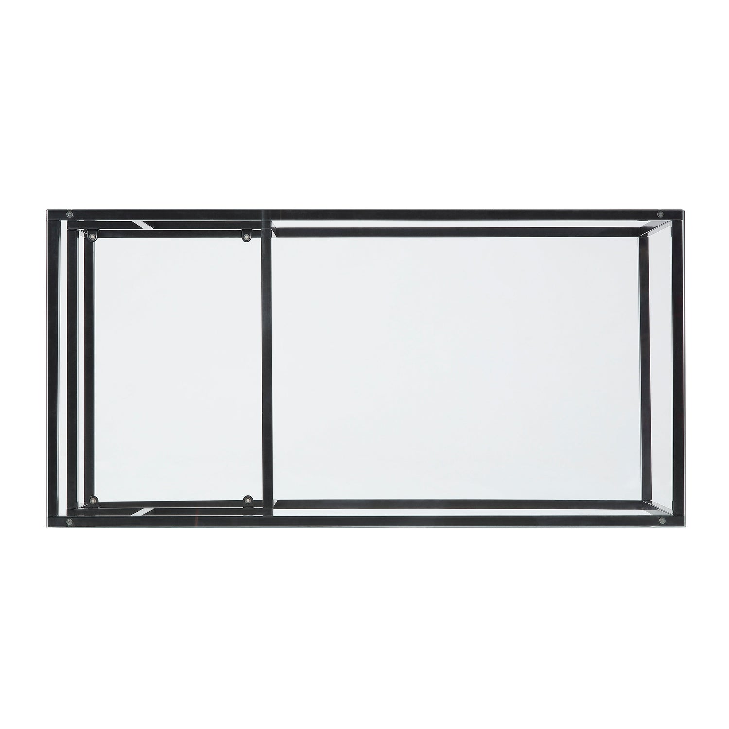 Black metal frames the planes of the Elyria Collection’s cocktail table, each line providing support to the dual level glass tabletops. The linear profile creates a complement your living room’s modern aesthetic.