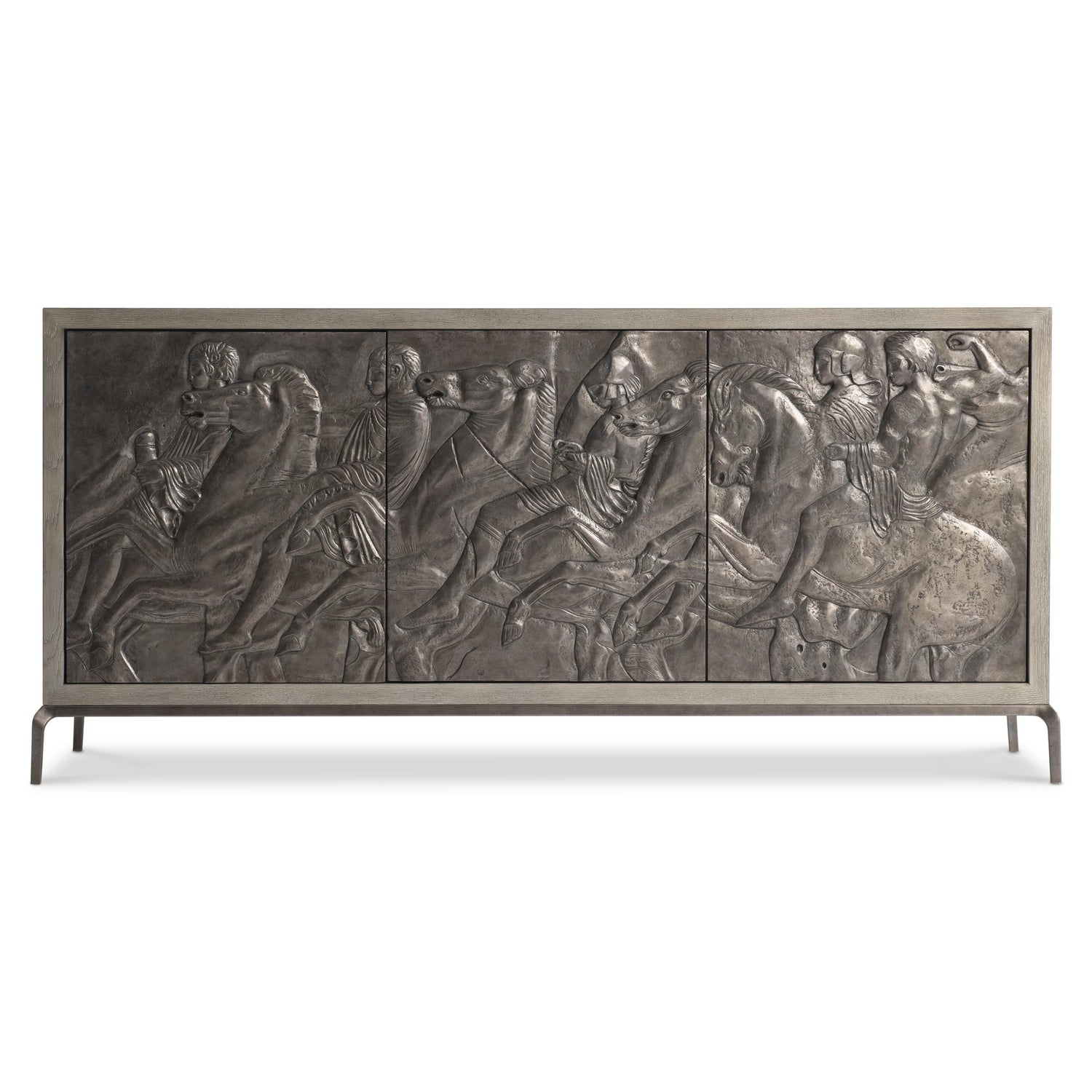 - Three push-to-open, soft-close doors with dramatic Roman frieze embossed design