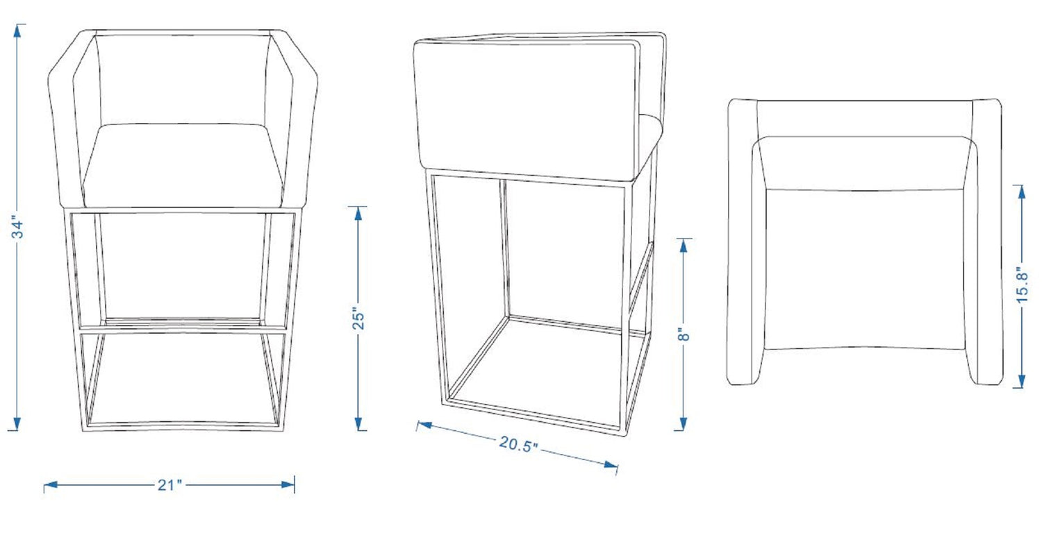 - Counter Stool Dimensions Measure: 20.5 in. Length, 34 in. Height, 21 in. Depth.