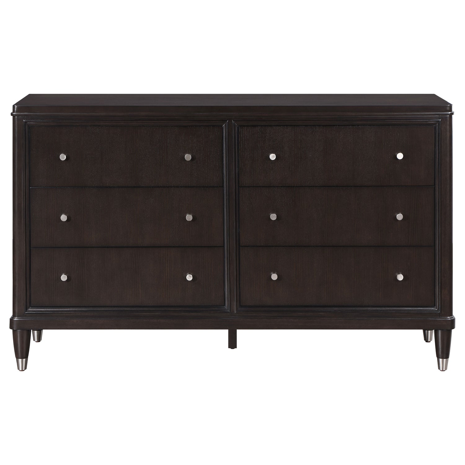 - Includes: One (1) dresser- A contemporary six drawer dresser offers stylish clothing and accessory storage and a refined look