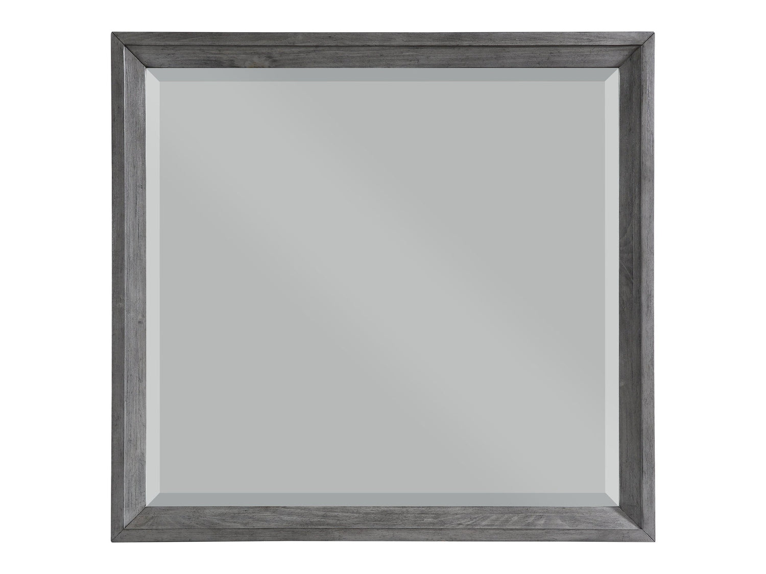 Modern styling is achieved by pairing classic design elements with eye-catching bold lines culminating in the chic look of the West End Collection. The gray wire-brushed finish of the bevel mirror frame’s birch veneer lends neutral accent to your home’s décor.