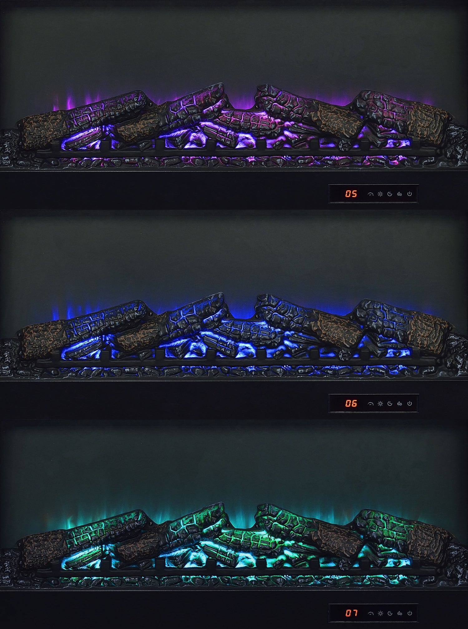 - Center fireplace insert without heat function and glowing ember display for cozy ambiance,