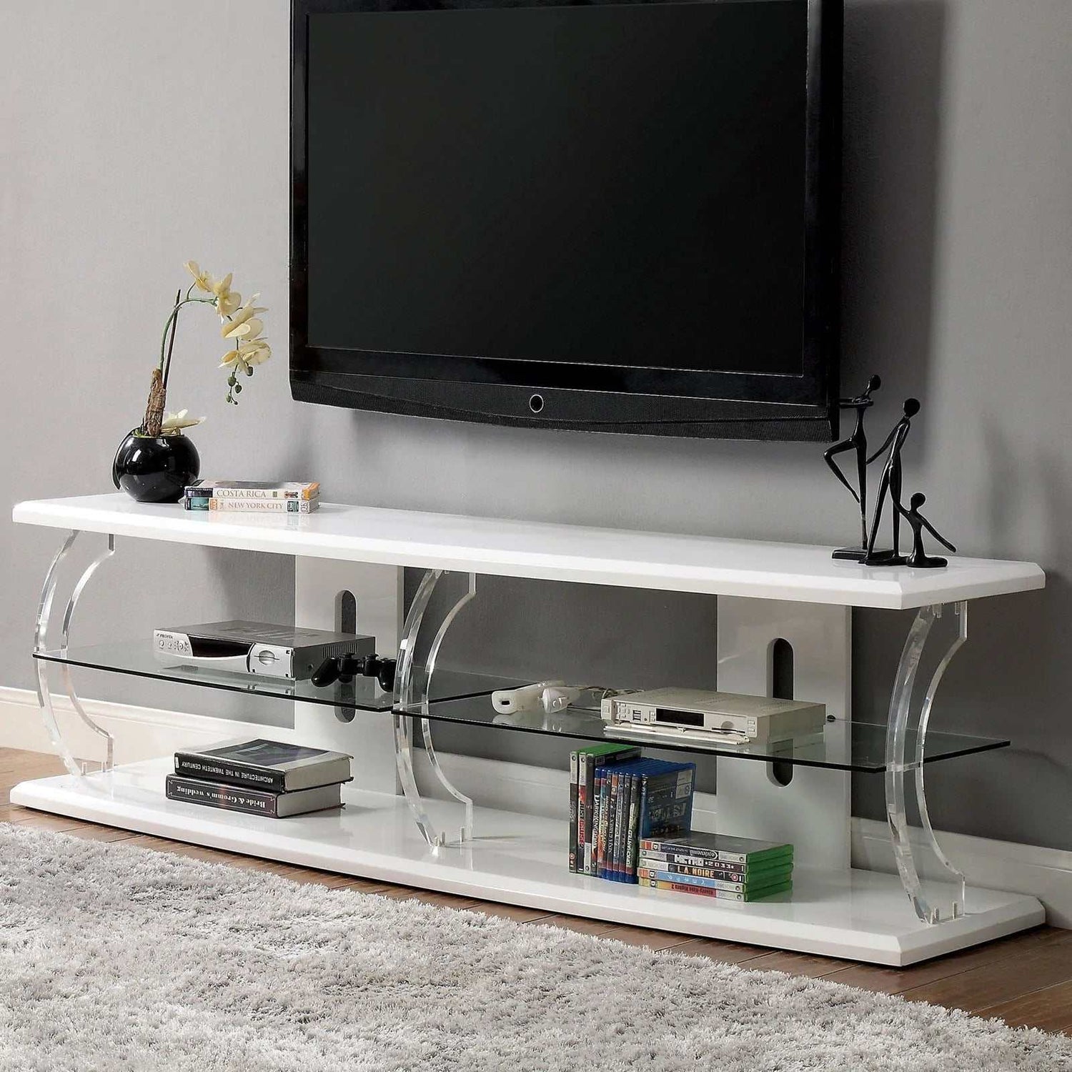 Your top of the line entertainment needs an ultra modern housing. Acrylic posts light up hold up a central glass shelf and a high gloss finished top shelf. This piece shines with a cutting edge aesthetic, and to take things over the top LED lights are implemented to light up the acrylic posts, giving it a sci-fi look and setting the mood in your living room.
