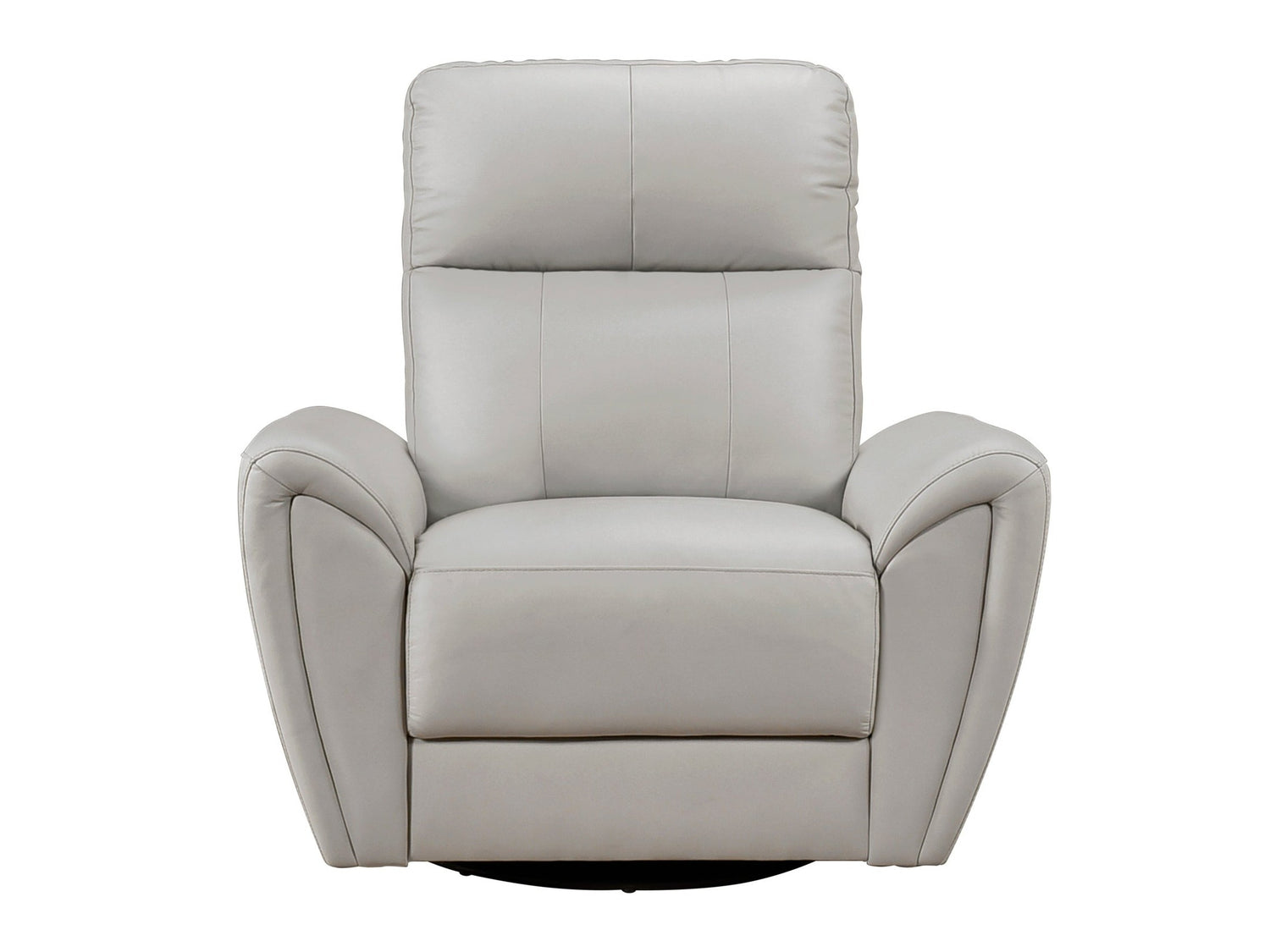 Modern lines define the sleek profile of the Essex Collection while creating the perfect seating addition for your living room. The 360-degree swivel base chair allows you to engage with your environment as you fully turn. The profile of the chair features low-profile flared arms, and contoured stitching on the seat and back. Light gray 100% top grain leather covers the chair where the body touches, while all remaining areas are covered in faux leather.