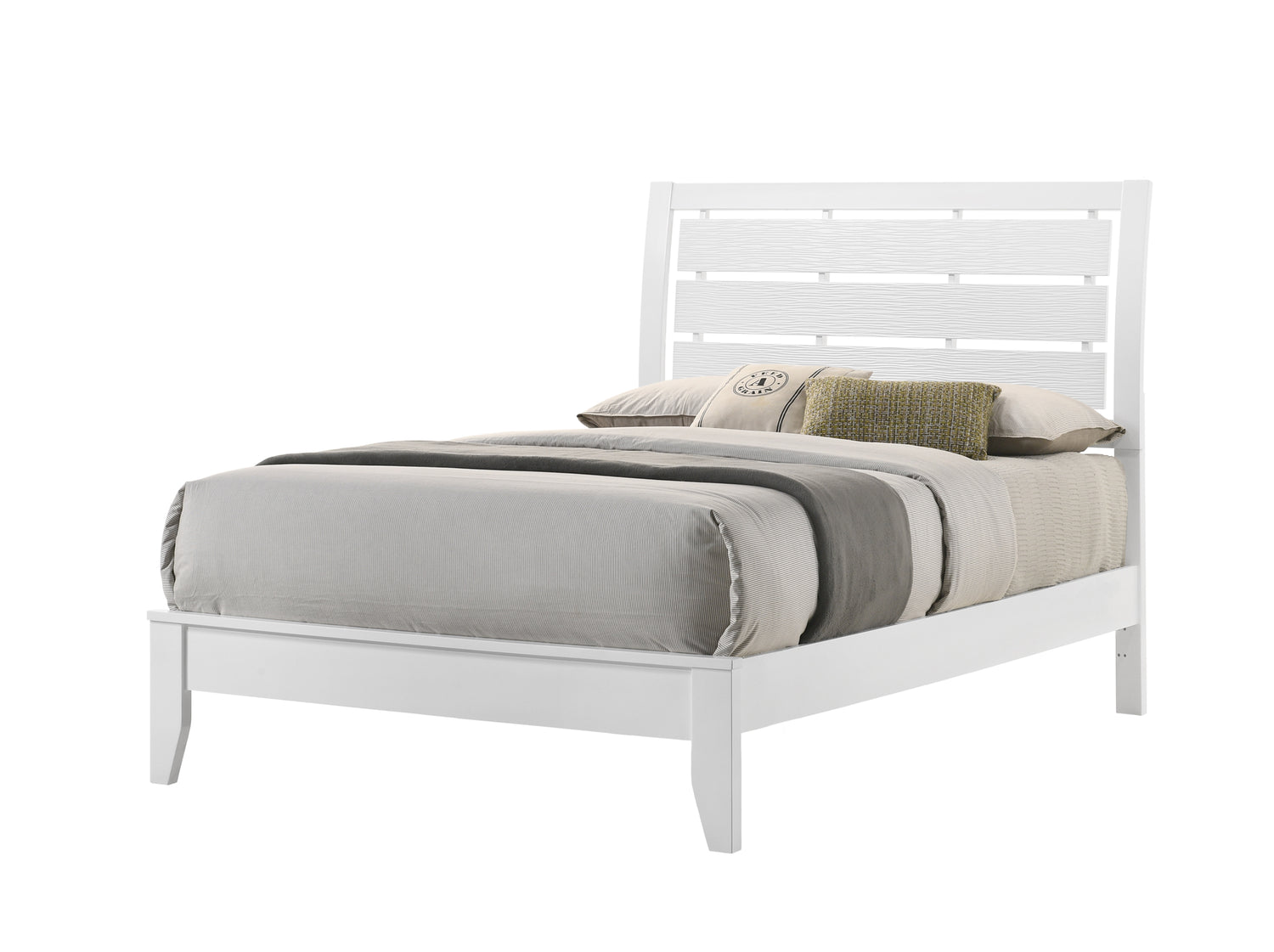 Refresh your bedroom with the Evan White Full Panel Bed, featuring a clean-lined design in a refreshing white finish. The horizontal slat headboard adds an airy, modern touch, making it an ideal choice for smaller rooms or guest spaces seeking both comfort and simplicity.