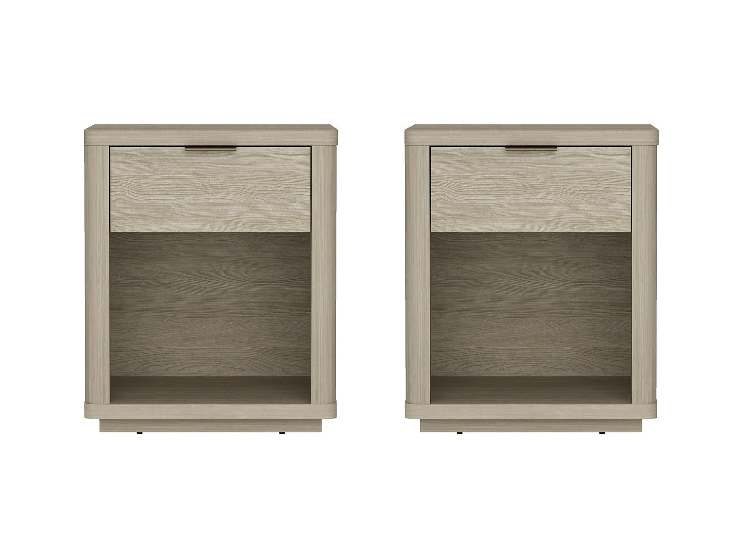 - Each Nightstand Includes 1 Open Shelf and 1 Full Extension Drawer.