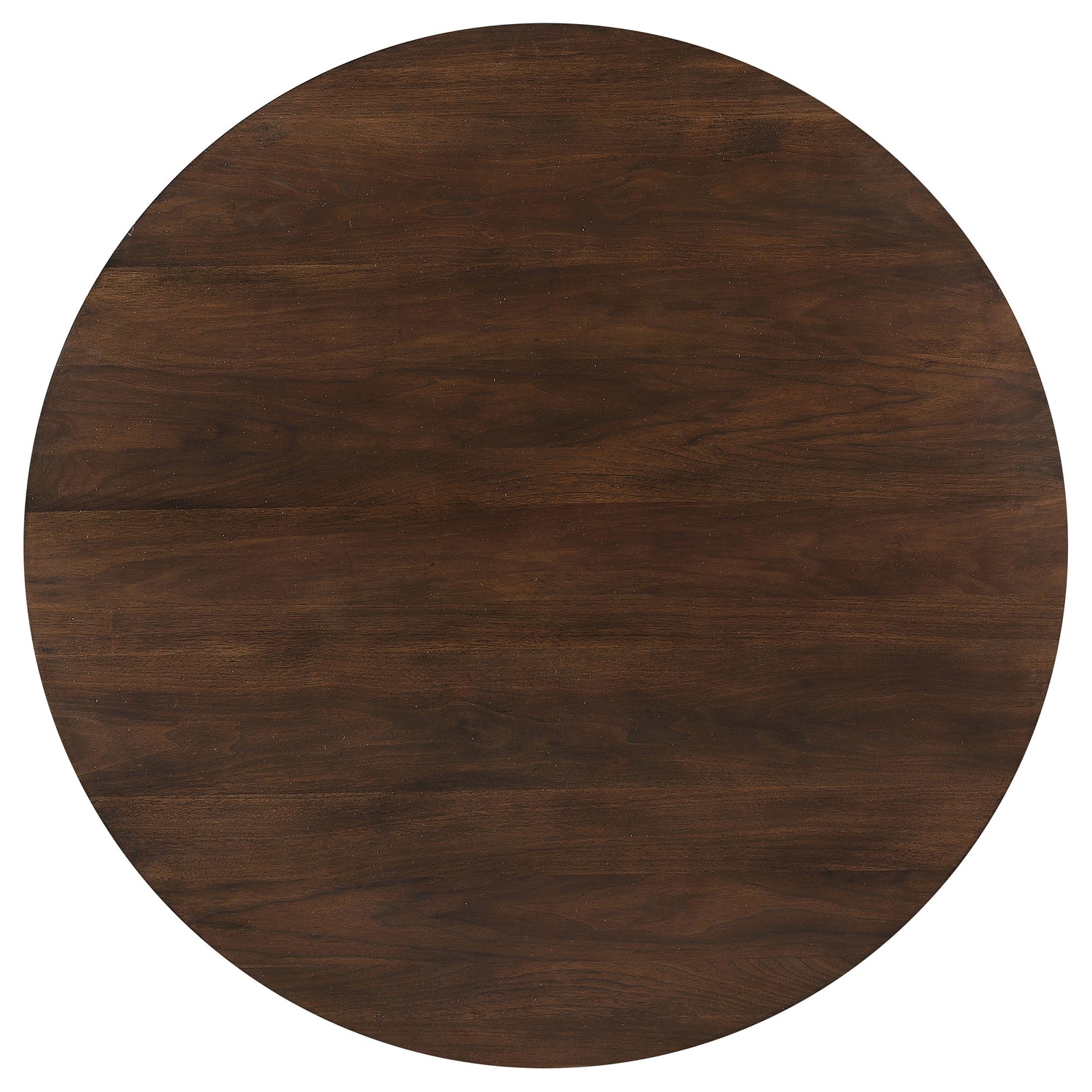 - Round dining table features a dark walnut wood finish that's deep and rich