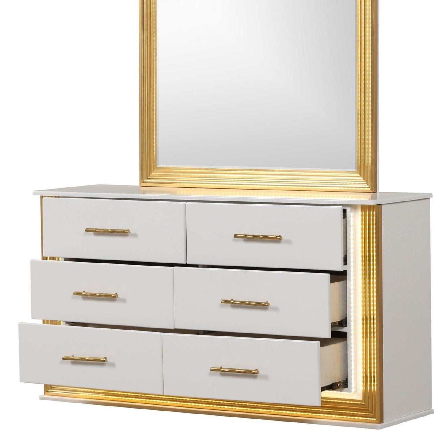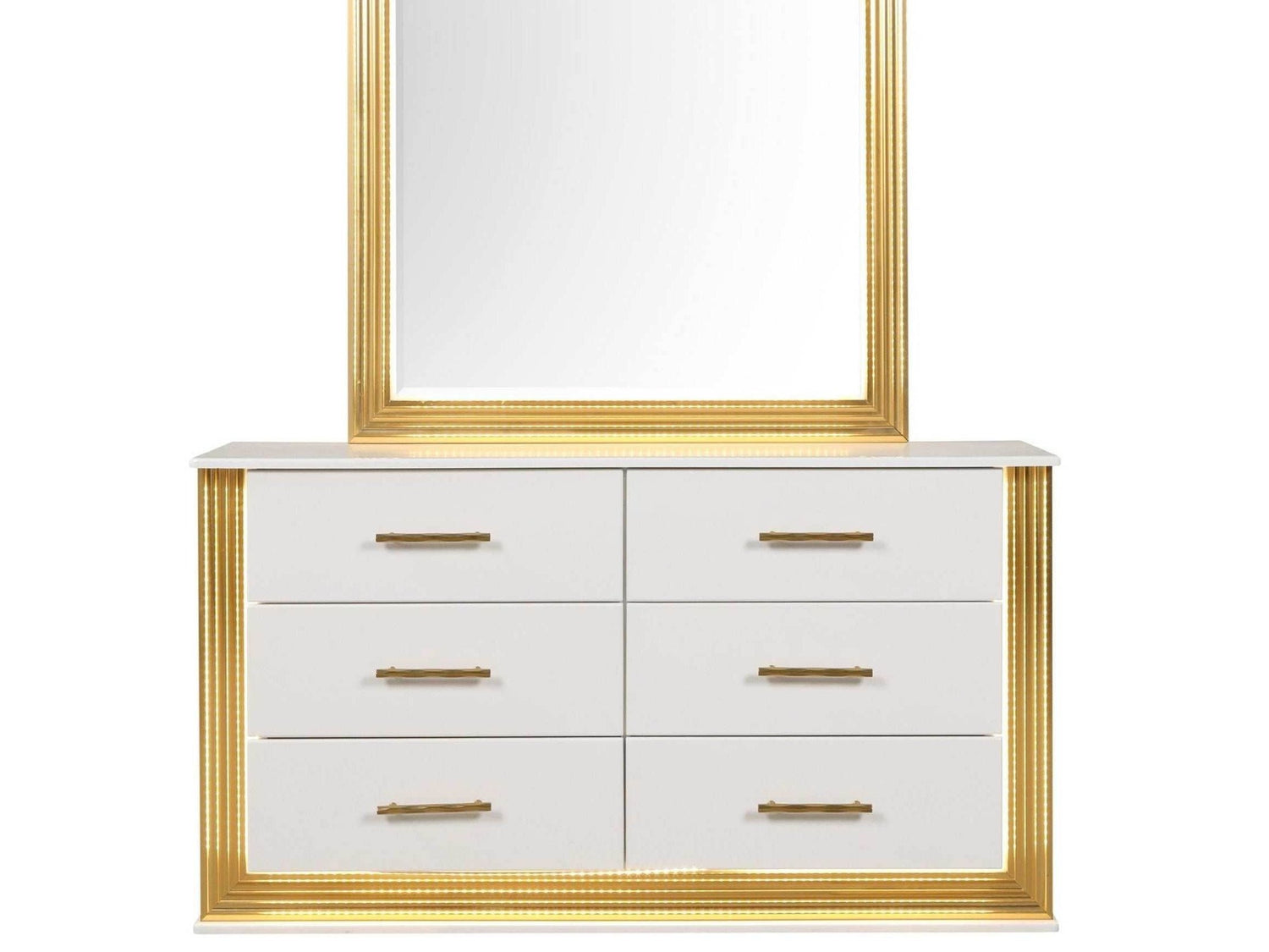 - The chic design and striking gold finish make this dresser a versatile furniture
