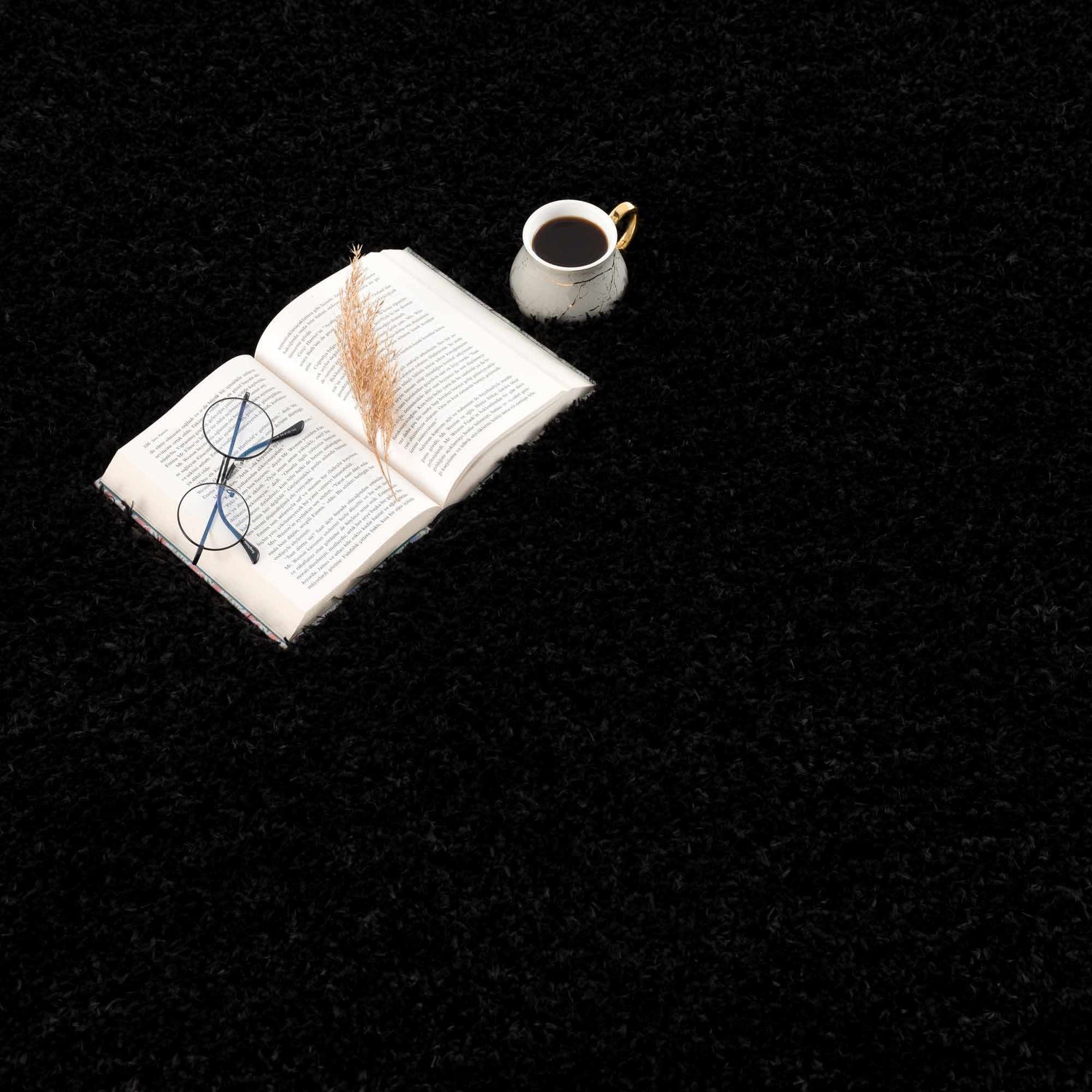 Faina Solid Black Shag Rug Washable