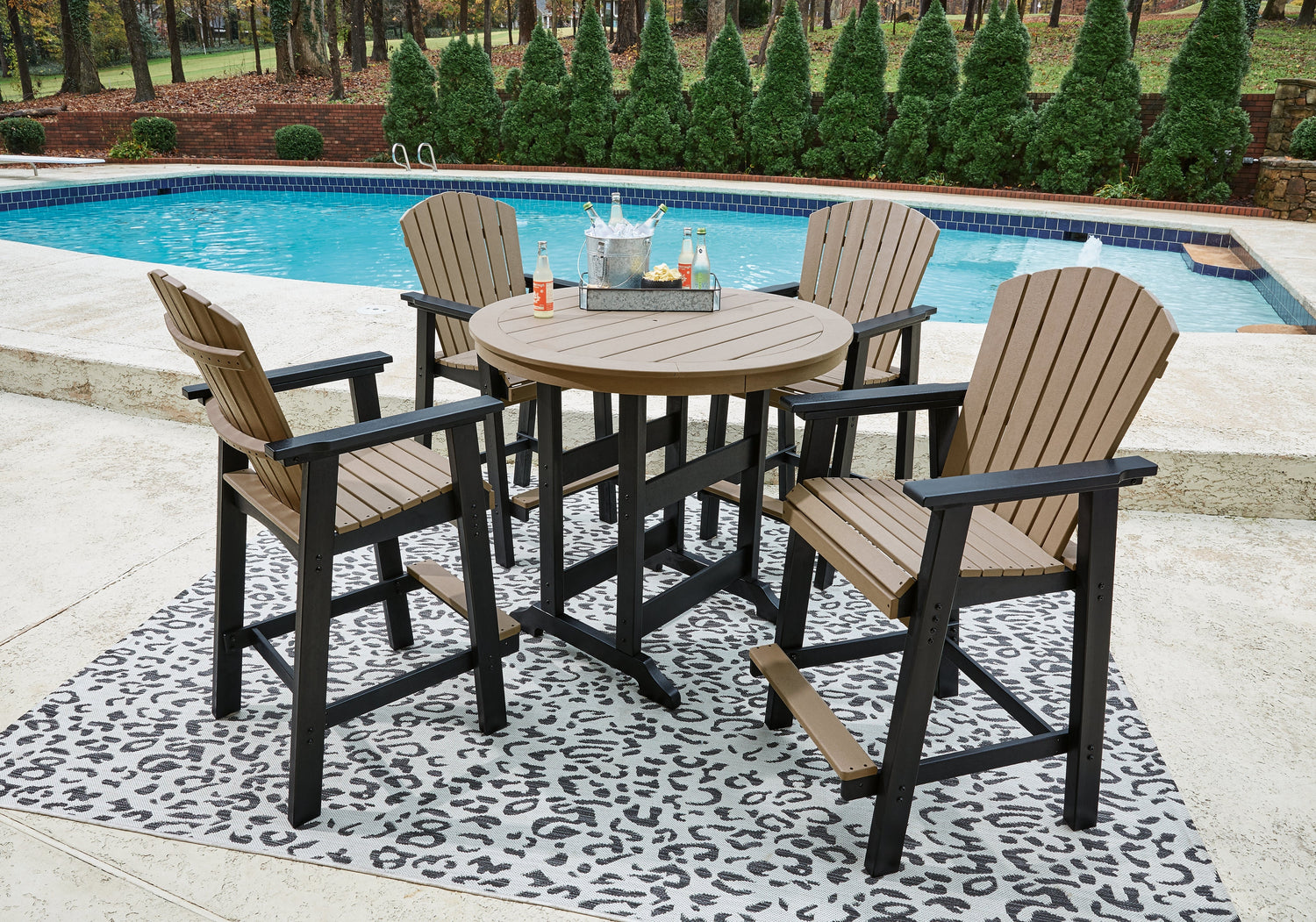 Fairen Trail Black/Driftwood Outdoor Counter Height Dining Table with 4 Barstools