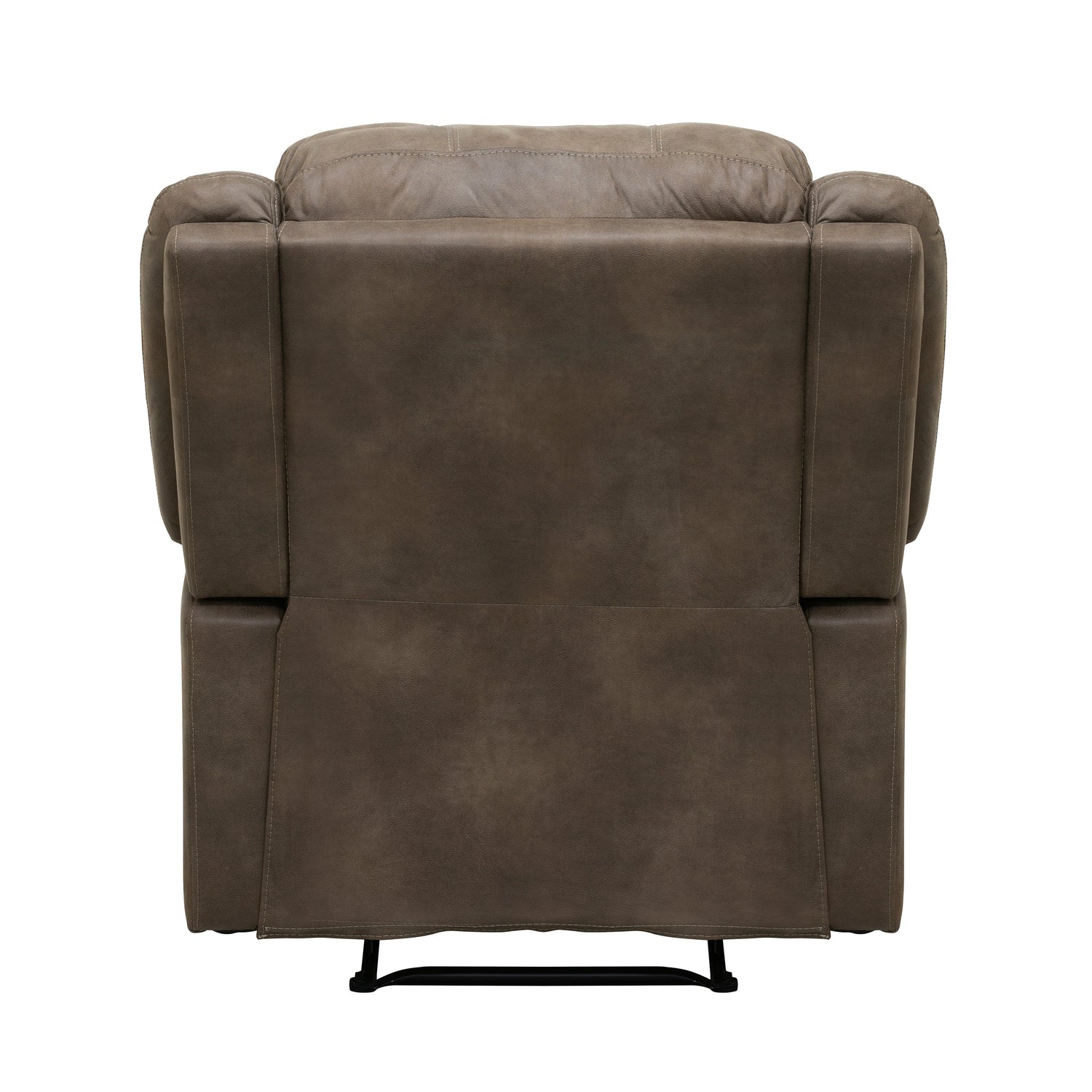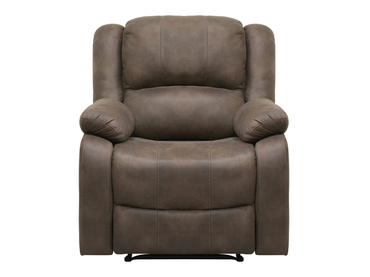 A solid pairing to your transitional living room, the Fairview Collection’s decorative versatility, and plush seating creating a reclining chair that is a complement to your lifestyle. Brown polished microfiber covers the chair, the neutral hue lending unobtrusive style to your space. The manual motion mechanism of the piece is engaged with a pull of the side-mounted tab, transitioning you from seated to reclined. The contoured seat structure is amply paired with pillowtop arms maximizing your comfort.