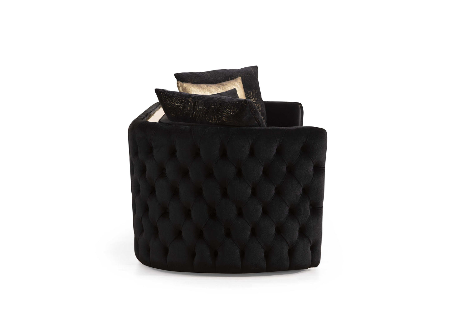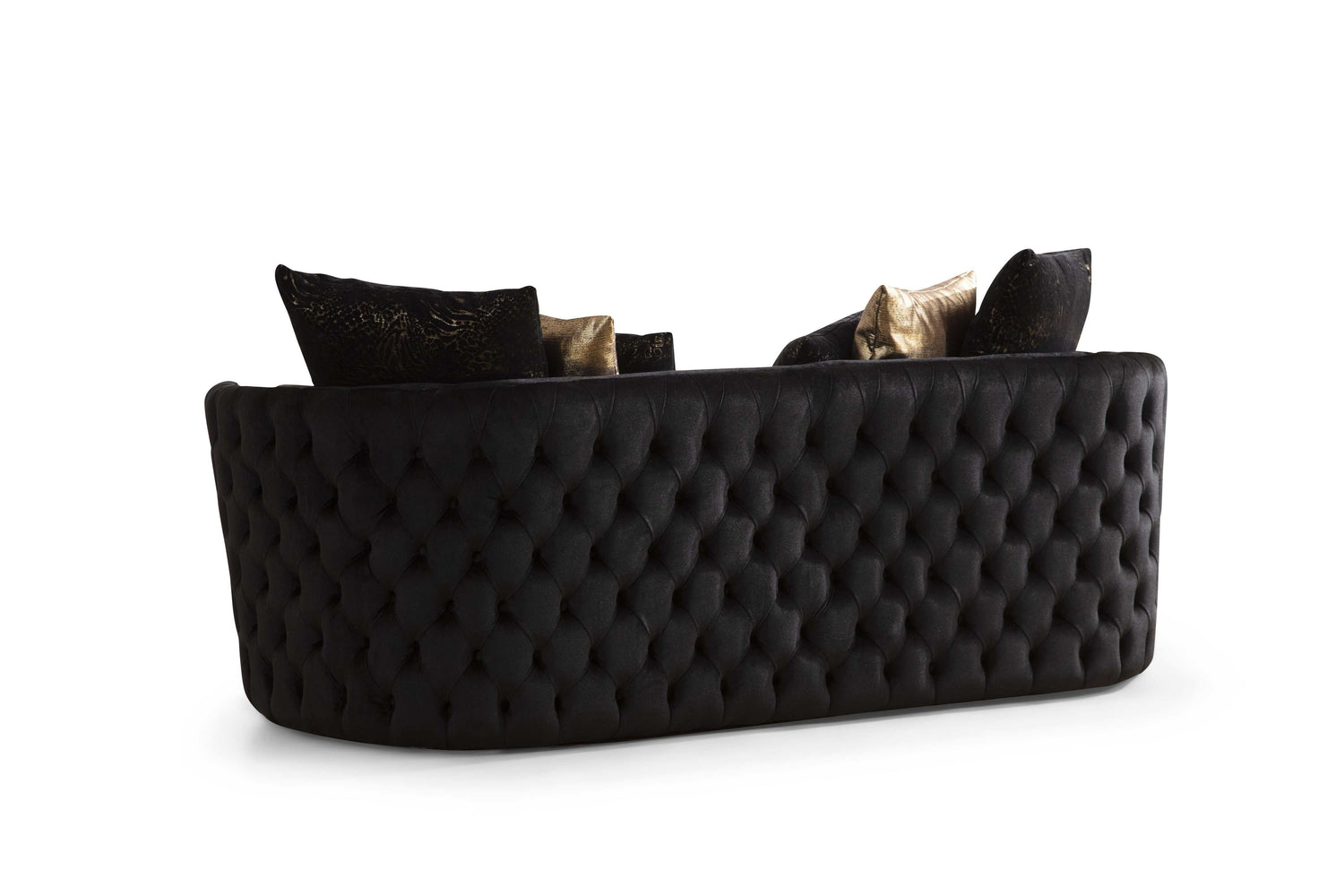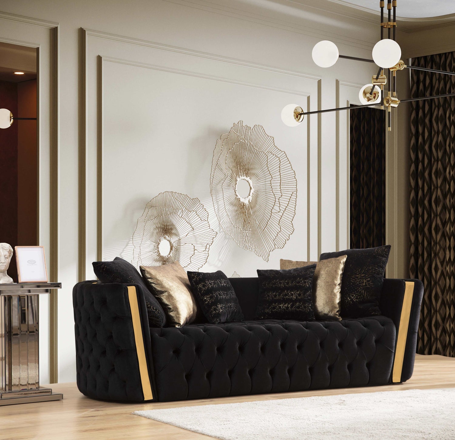 Featuring beautiful button-tufted arms and seats. The Fanci Collection gives a classic-modern decor. High-density foam padding provides maximum comfort. Fanci has a luxurious, glamorous look that can change the aura of your living room. The gold details are sibu material which is durable, tear-resistant, easy to clean, and dimensionally stable.