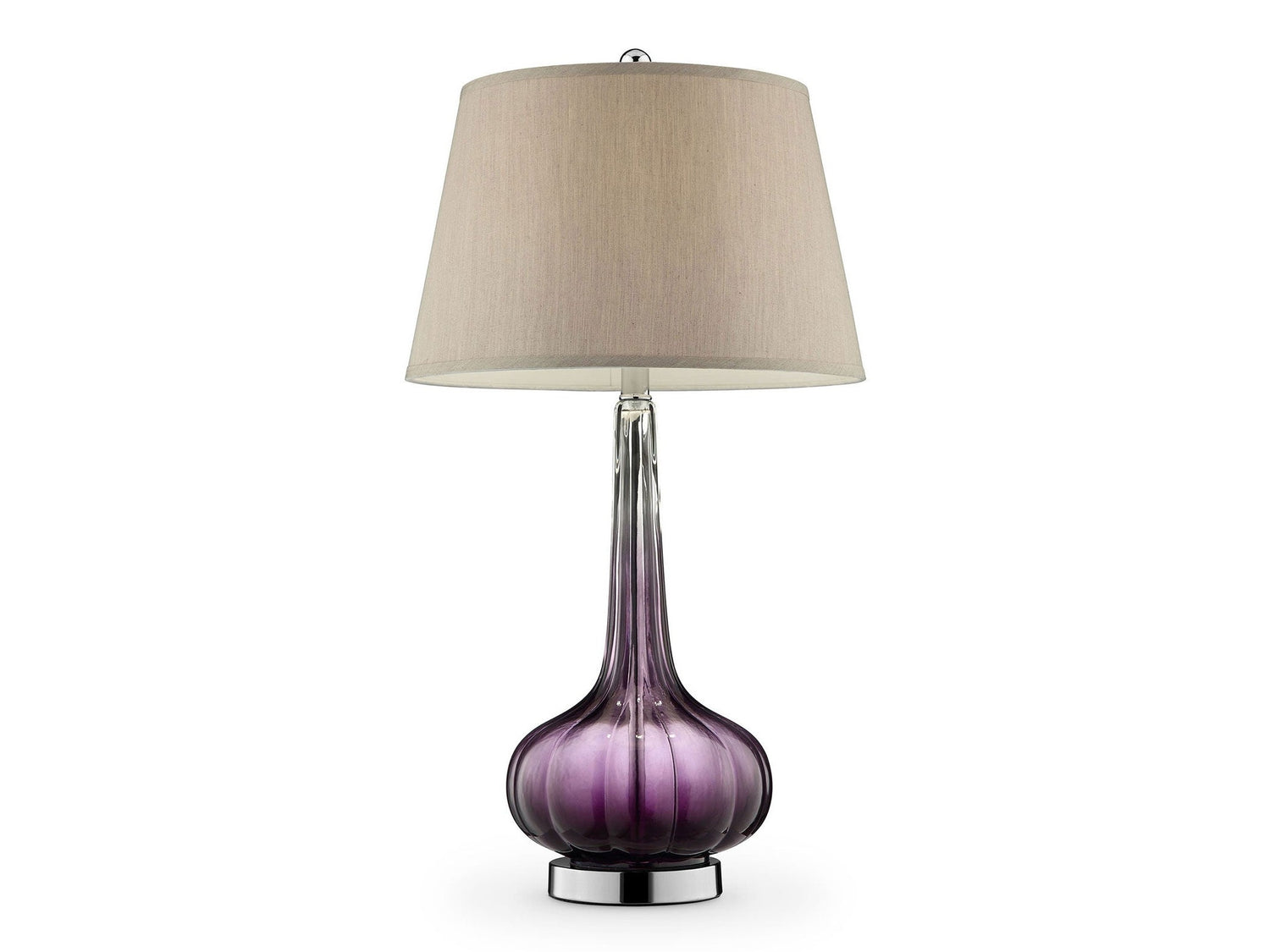 A tall neck and onion-shaped base with a sexy purple tint creates an upscale table lamp.