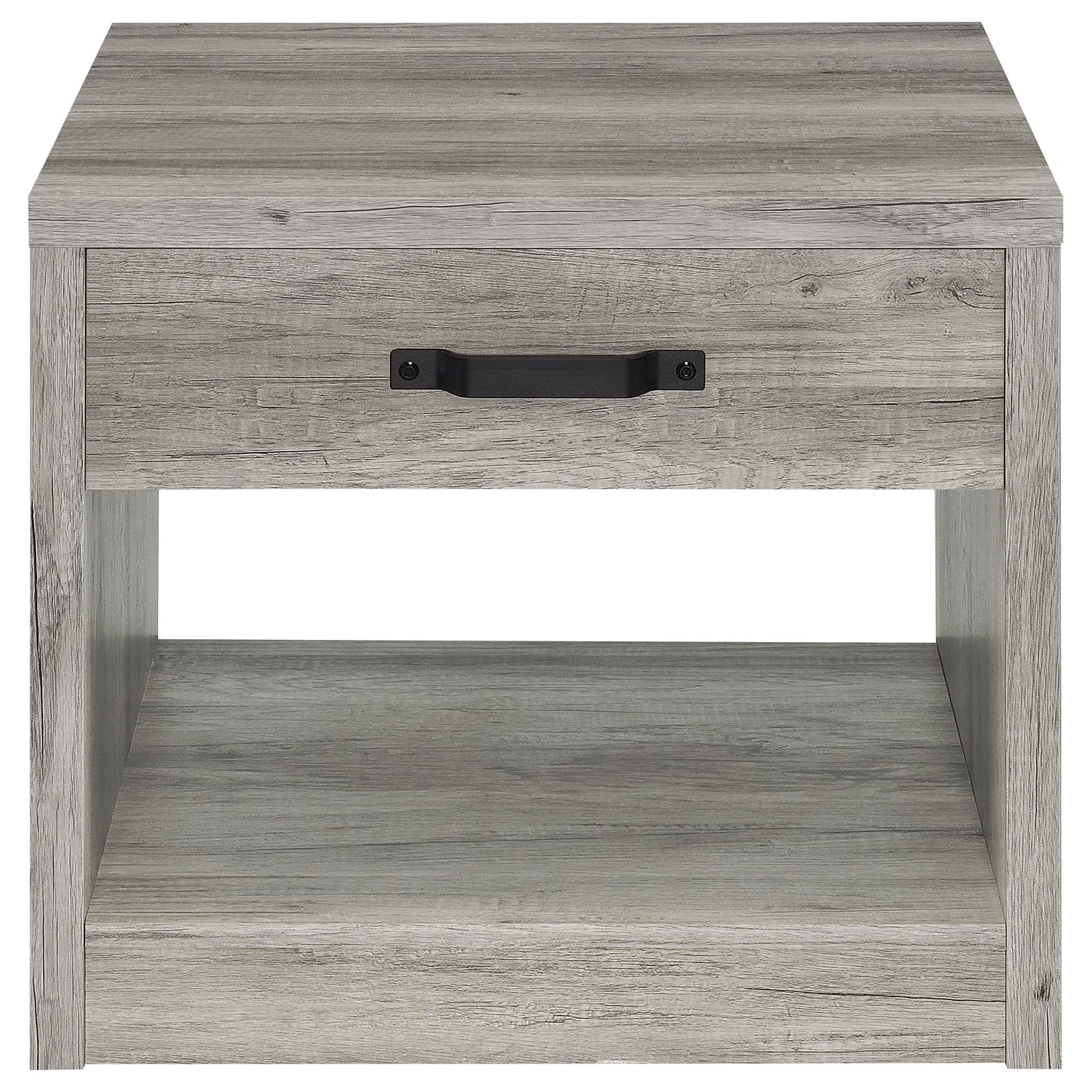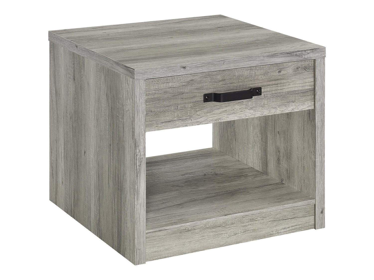 - Includes: One (1) end table- Rustic weathered gray finish adds earthy charm to any room