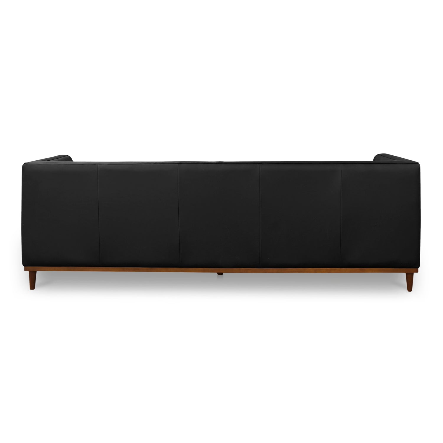 - Top-grain Brazilian leather upholstery with slight, elegant embossing & very light finishing- Simple, clean line rubber wood & plywood frame with warm walnut finished wooden base & tapered leg detail