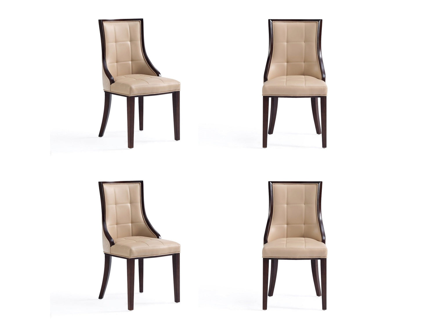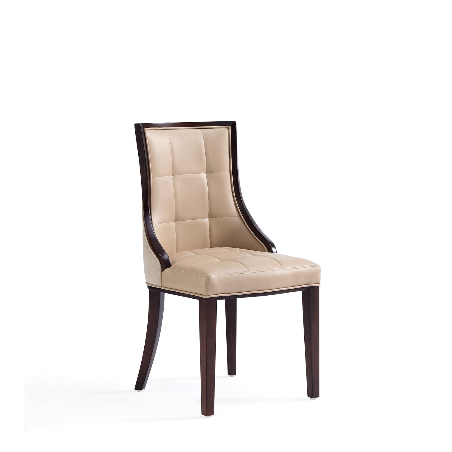 - Item Name: Fifth Avenue Faux Leather and Velvet Dining Chair in Tan and Walnut (set of 4)