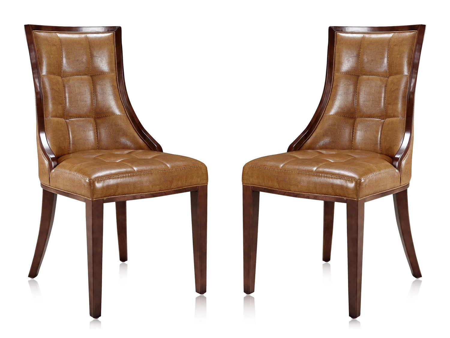 - Item Name: Fifth Avenue Faux Leather Dining Chair (Set of Two) in Saddle and Walnut