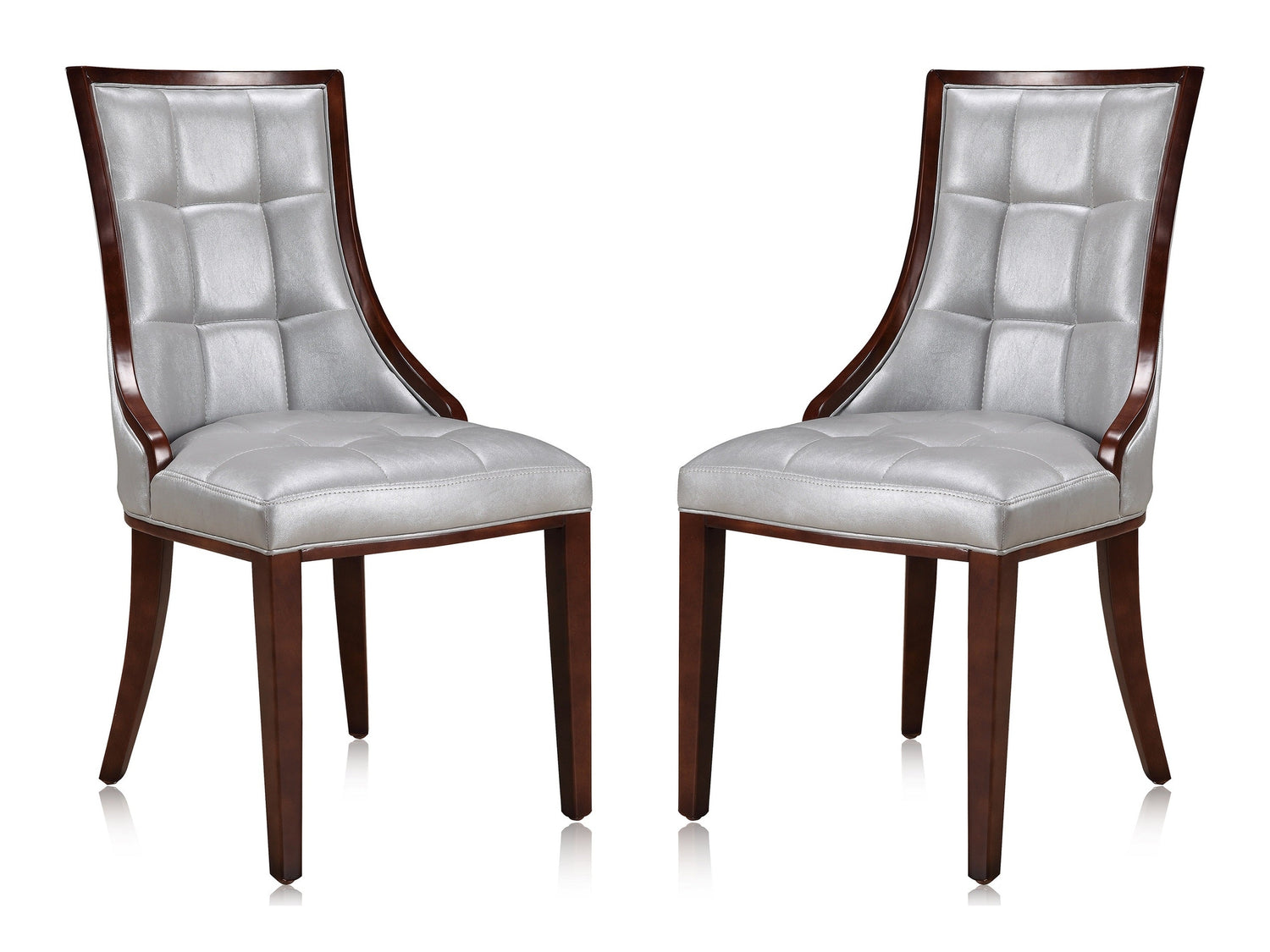 - Item Name: Fifth Avenue Faux Leather Dining Chair (Set of Two) in Silver and Walnut