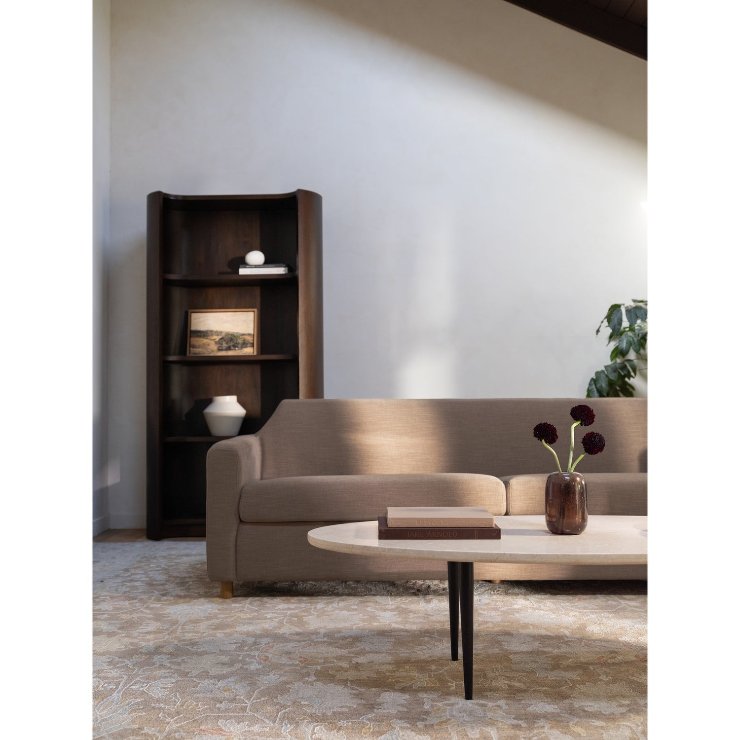 - Mid-century form: Subtly angled back, slim cylindrical legs, and a streamlined bench seat give the sofa posture and presence without feeling heavy.