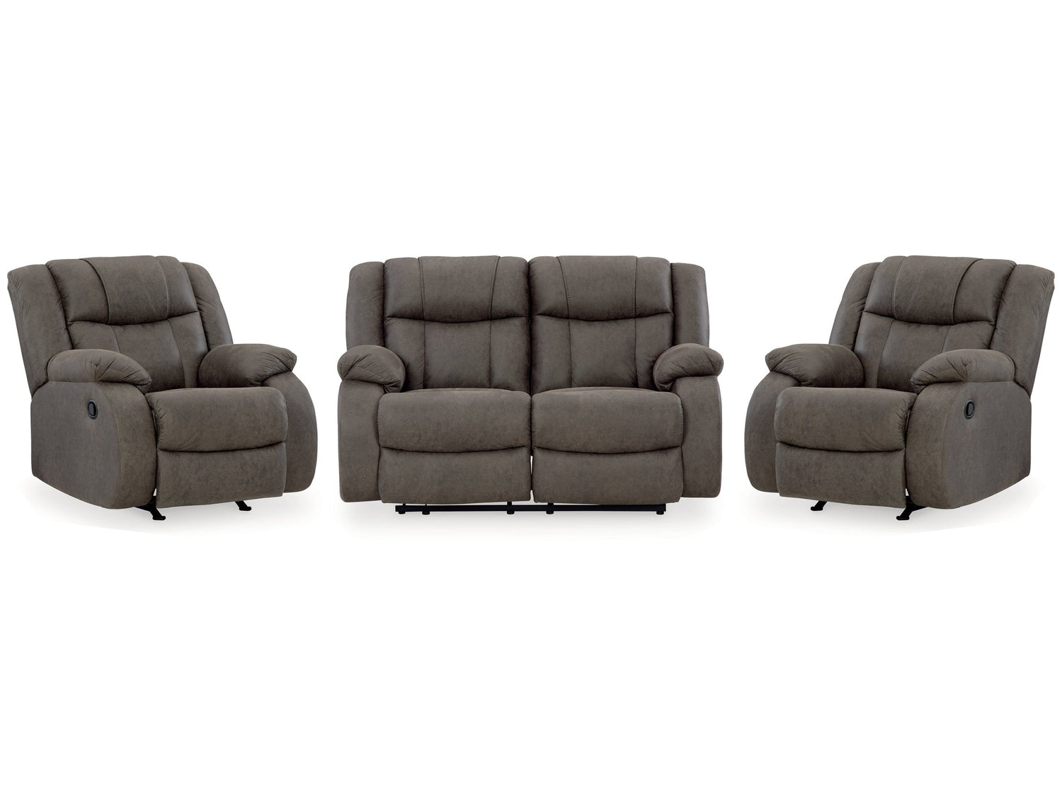 First Base Gunmetal Reclining Loveseat & 2 Recliners (Online Special Price)