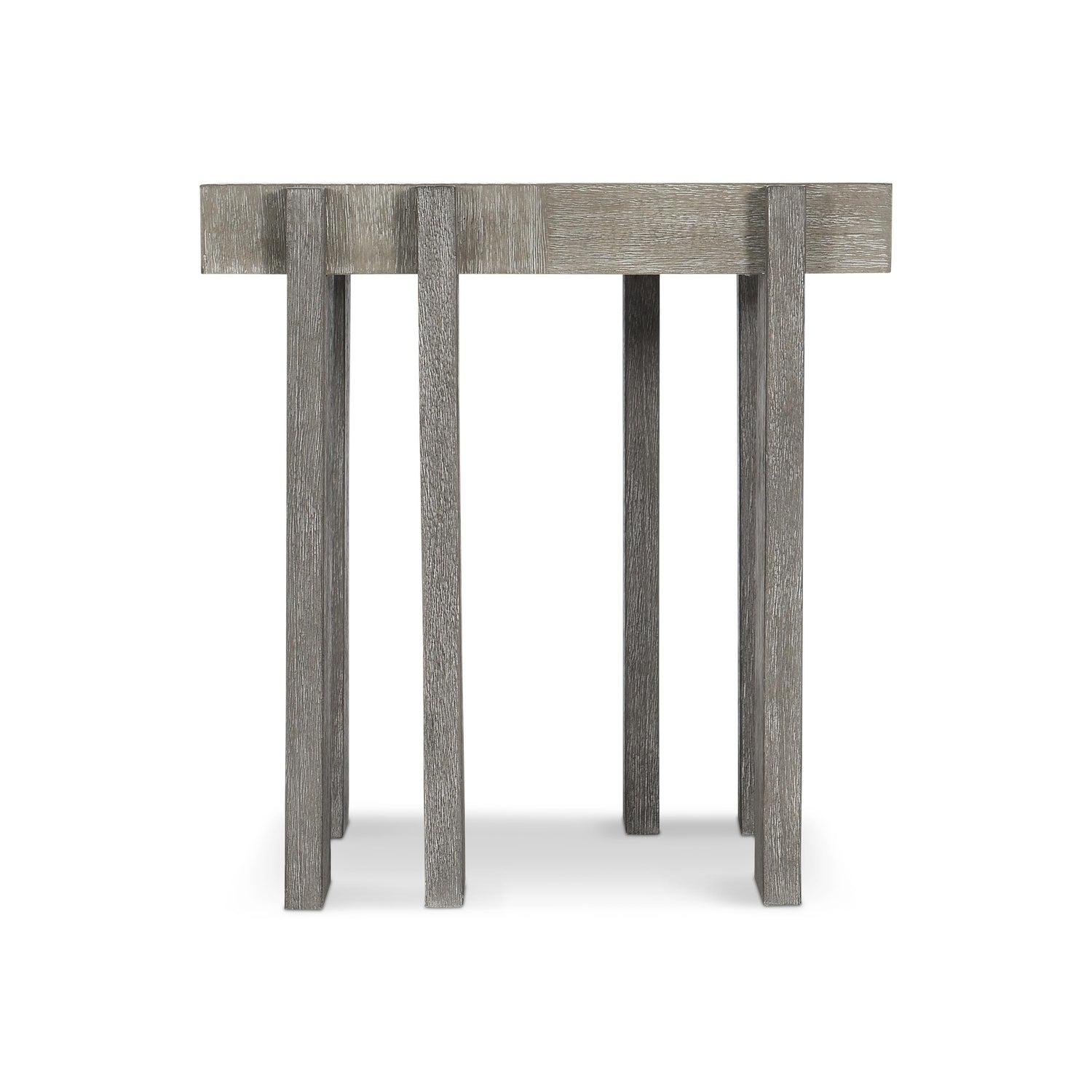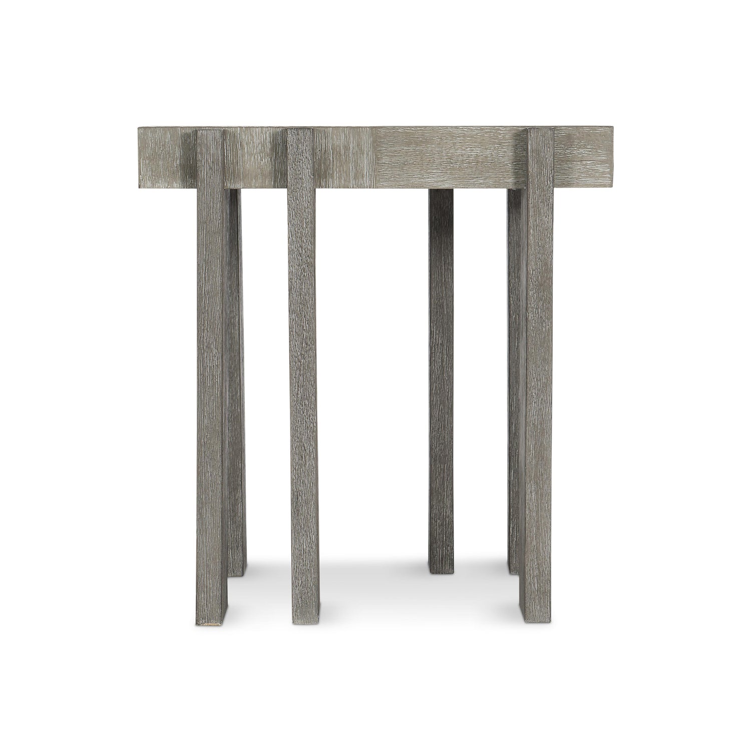 Foundations is a new, refined expression of modern rustic, defined by a minimalist style and relaxed comfort. The Foundations side table is artfully crafted in a butcher block style, featuring light and dark weathered acacia in a checkerboard pattern. Six asymmetrically placed legs add a sense of whimsy to the unique design.