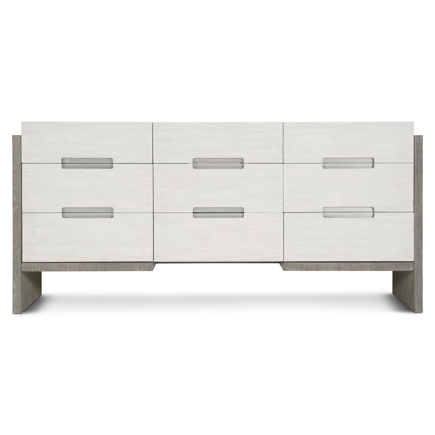 - Two-tone finish - Drawer box in Linen finish and support panels and rails in Light Shale finish