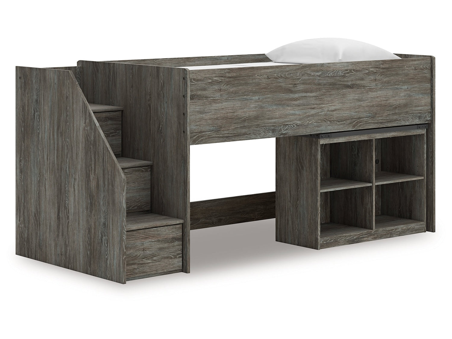 - Item Name: Frandern Gray Twin Loft Bed with Bookcase Storage