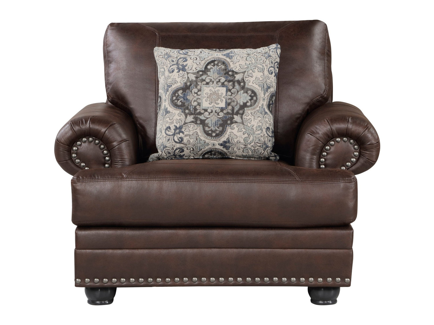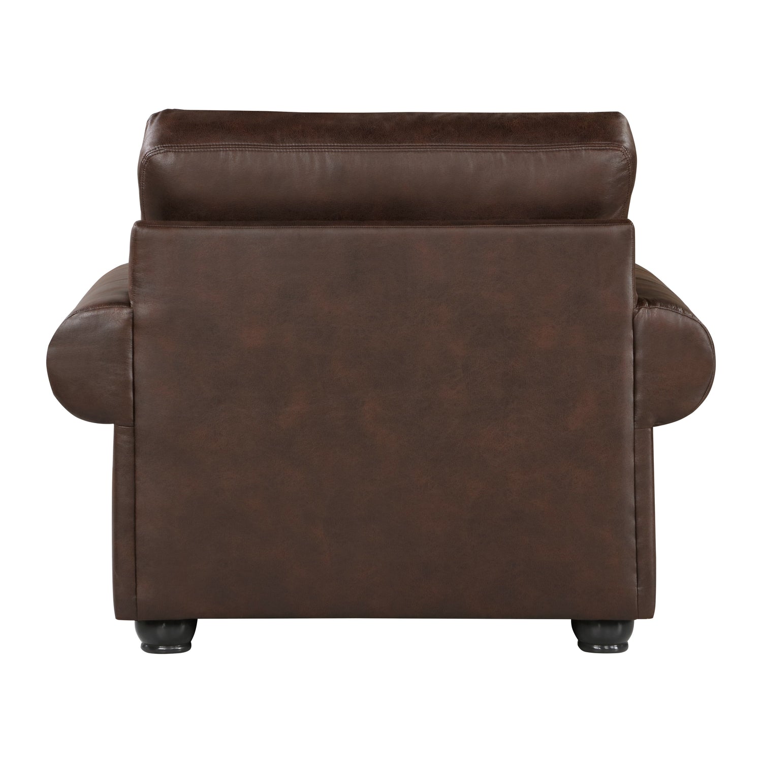 With a refined look that is steeped in traditional design, the Franklin Collection provides a timeless elegance to your living room. Dark brown polished microfiber covers the frame of the chair while traditional rolled arms, and nailhead trim provide classic detail to profile of the design an elegant pairing to complement your space.