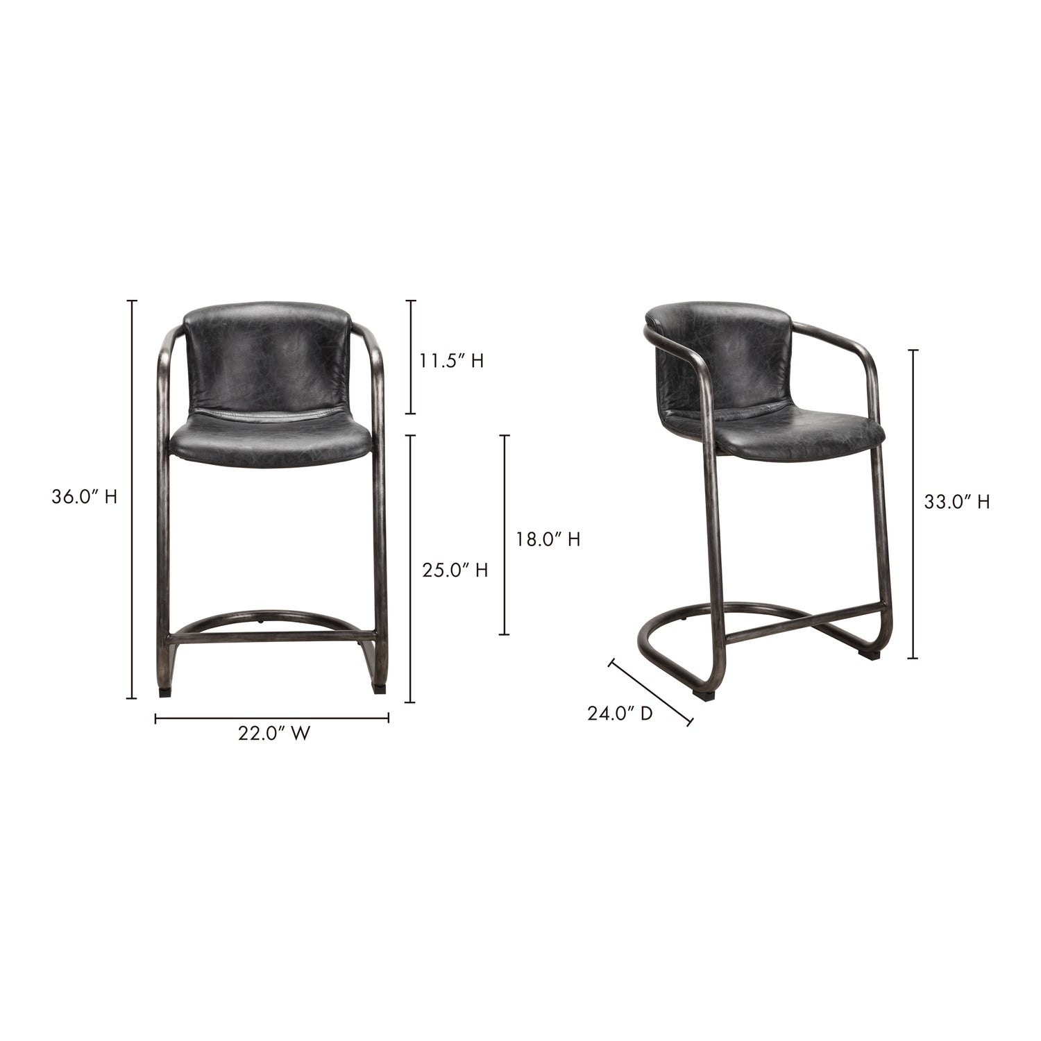 - Item Name: Freeman Onyx Black Leather Counter Stool (Set of 2)