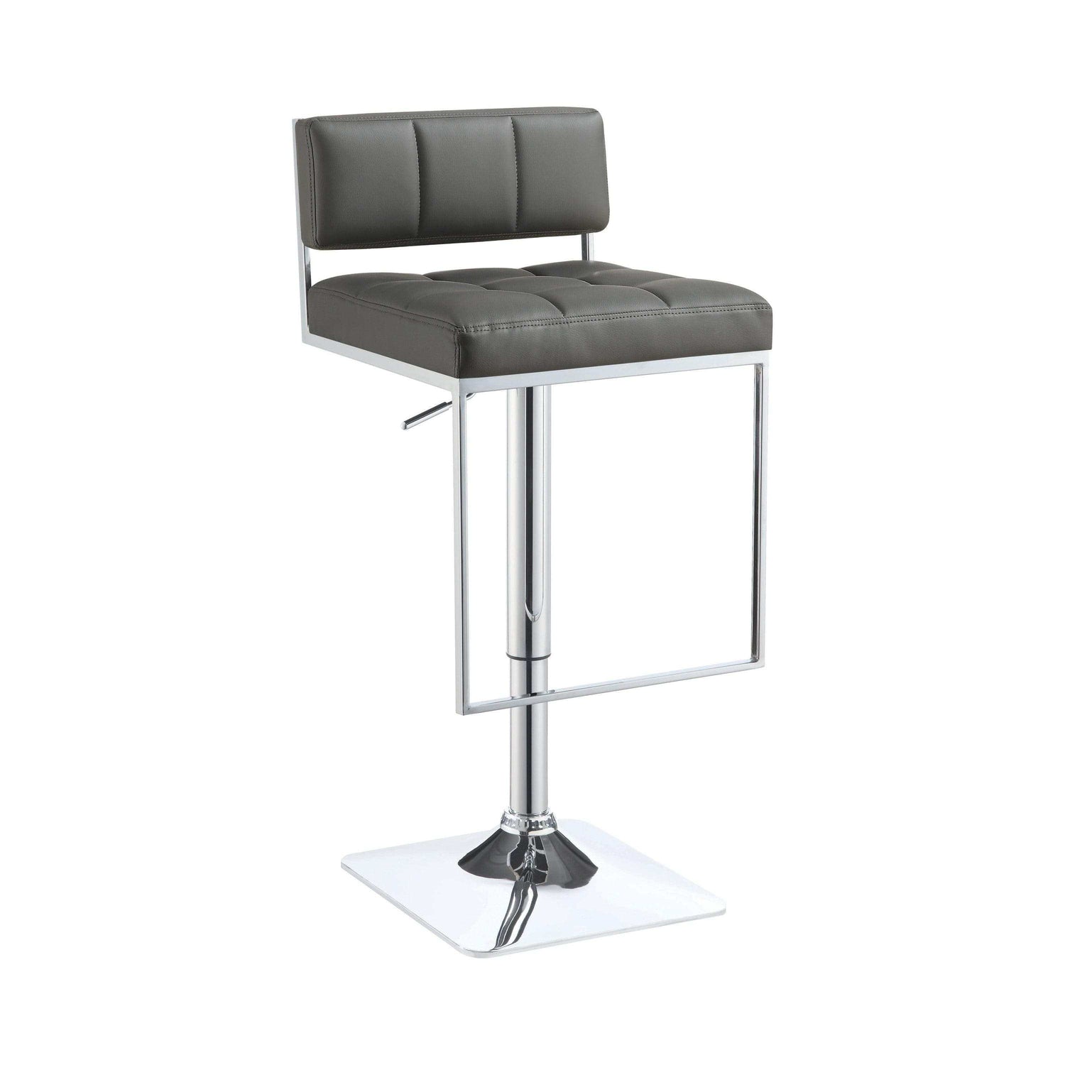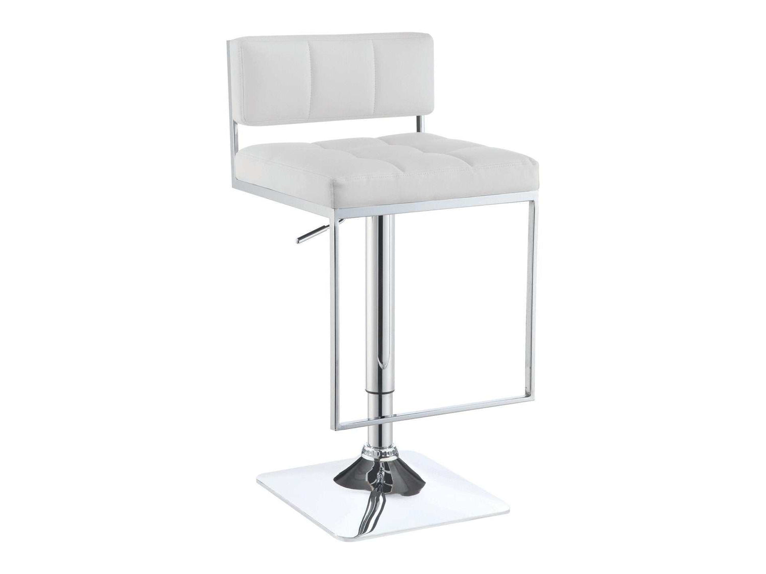 Refresh a modern space with a dynamic accent. A slender silhouette makes this bar stool perfect for a redesigned contemporary kitchen or dining space. Sleek white upholstery with channeling covers linear designed cushions. Chrome finish metal forms a base and cool U-shaped footrest. Adjustable seat heights conform to a coordinating pub table or counter.
