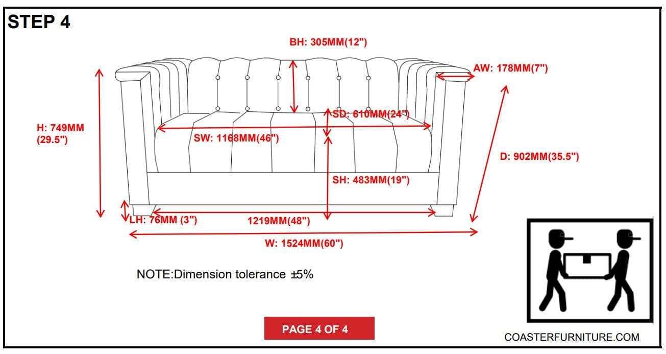 - Width: 60" Depth: 35.5" Height: 29.5"